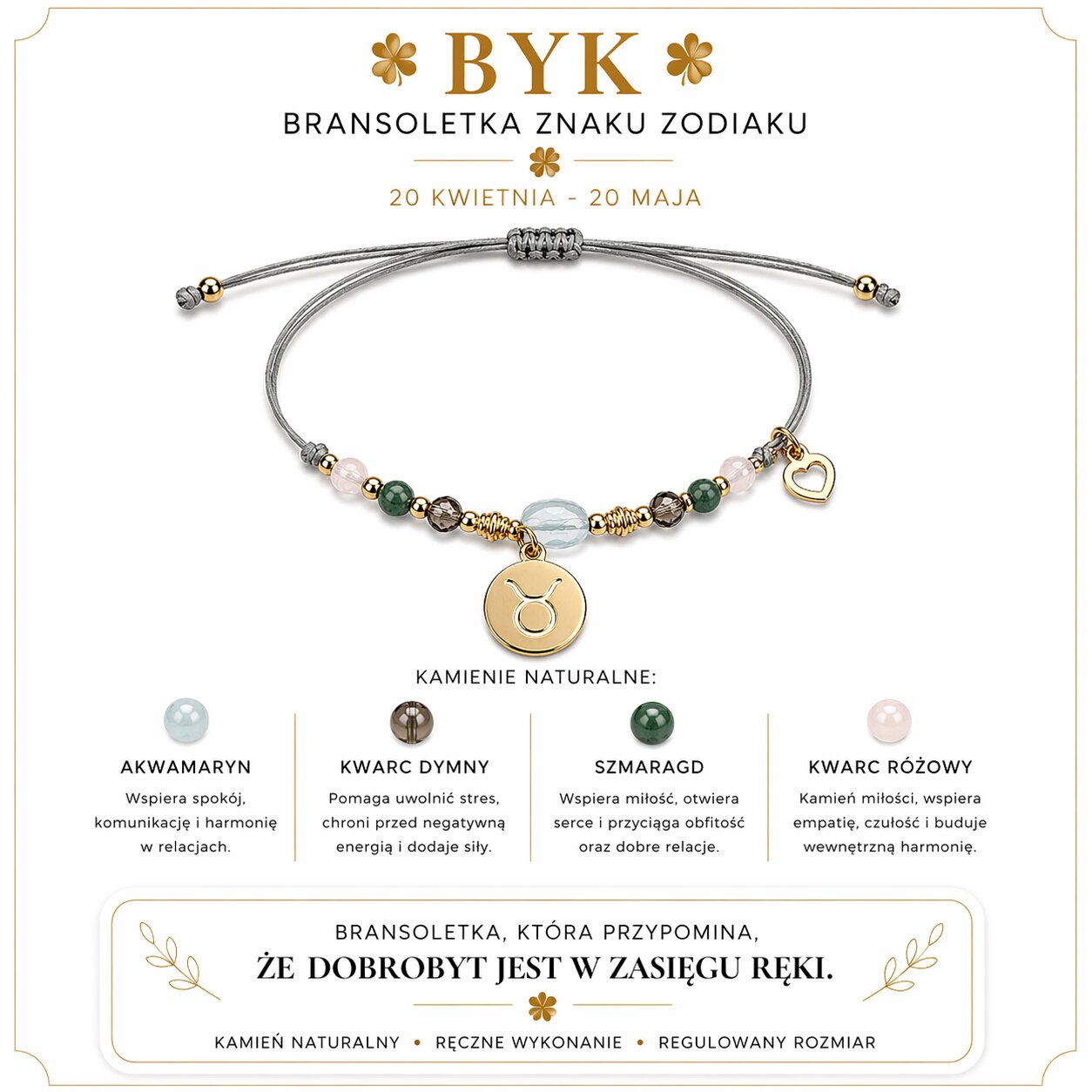 Byk znak zodiaku bransoletka - akwamaryn, kwarc dymny, szmaragd, kwarc różowy