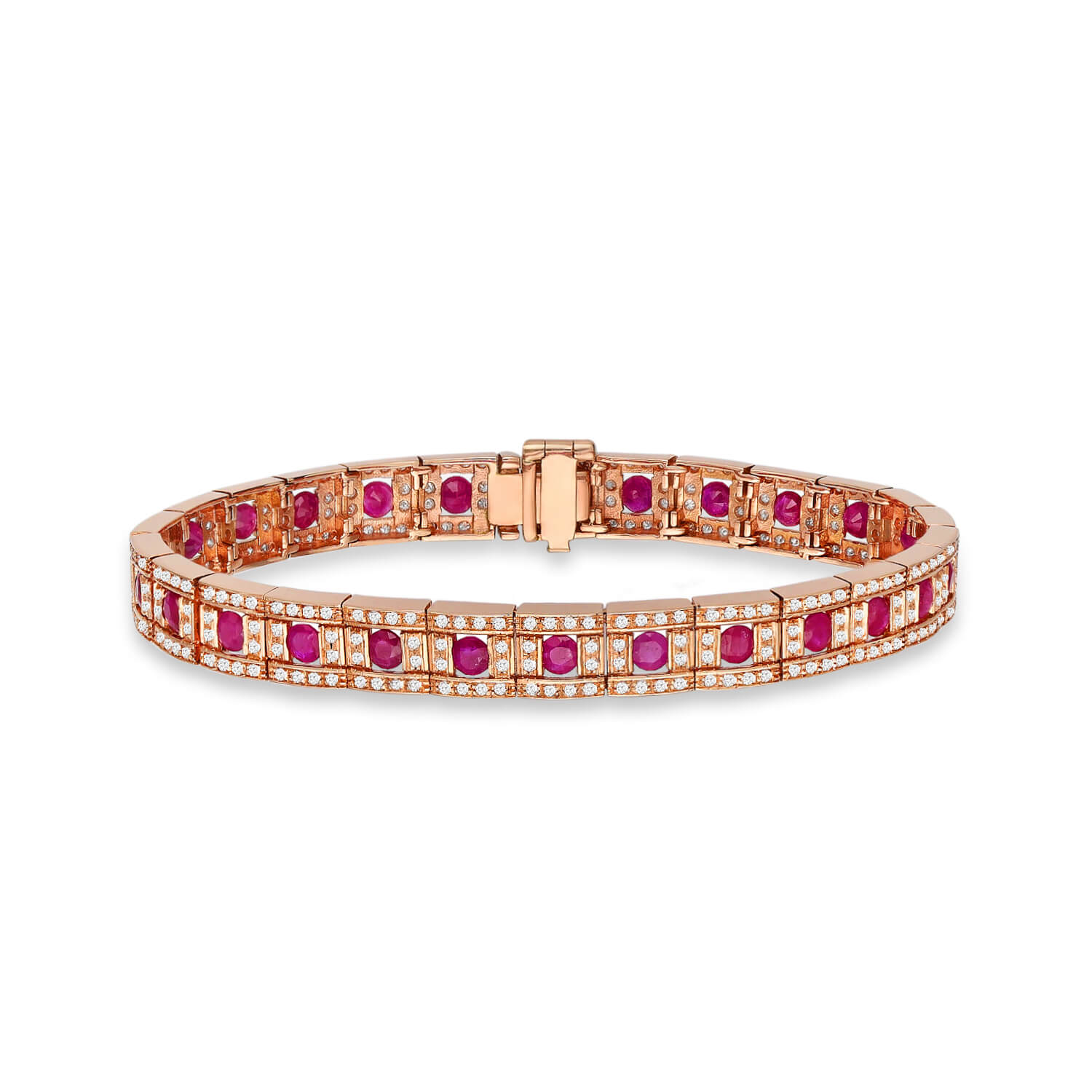 Królewska pasja - Bransoletka z różowego złota z brylantami i rubinami 750