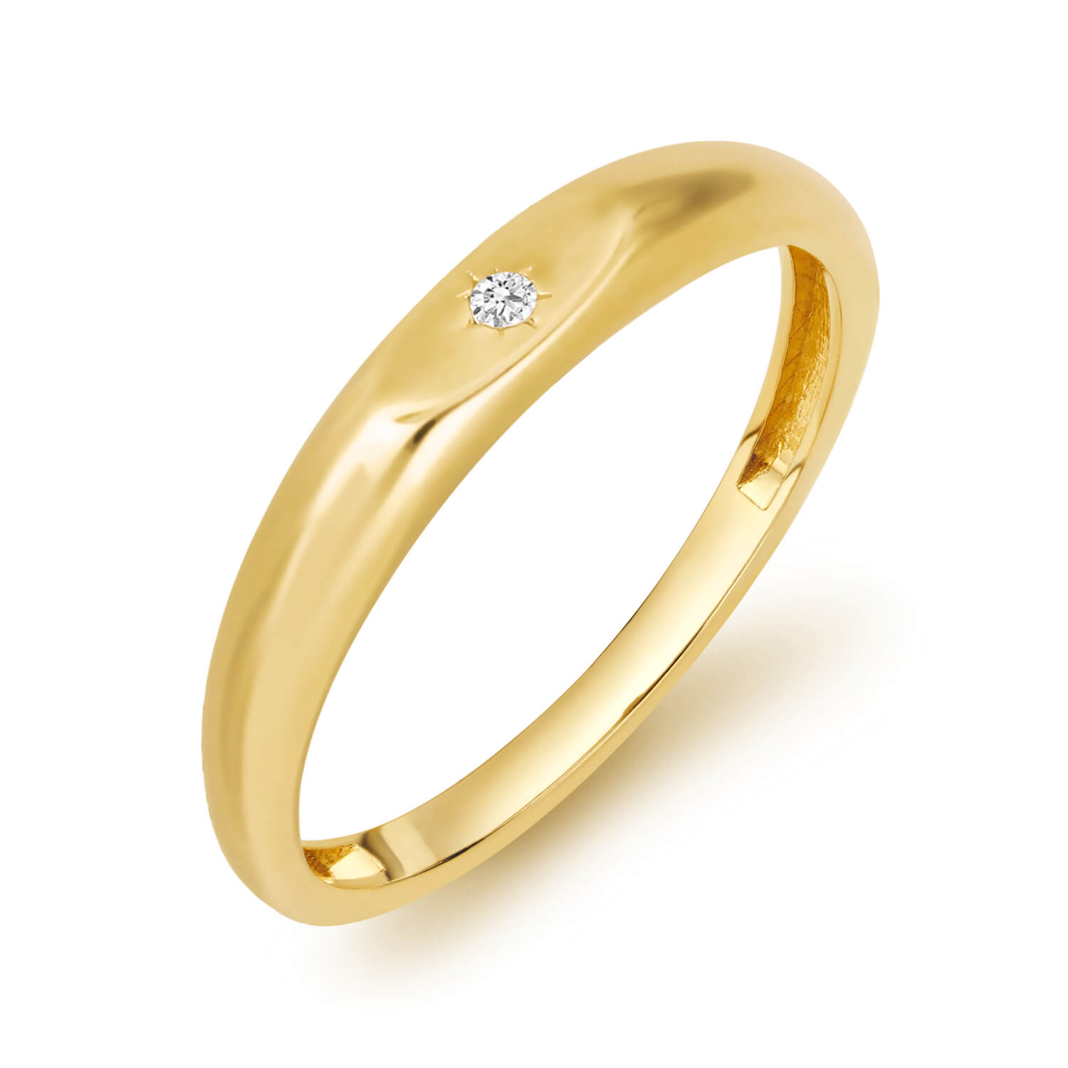 Modny złoty pierścionek wykonany został ze złota próby 585. Złoty pierścionek modowy jest stworzony do codziennej stylizacji i do noszenia na każdym palcu. Gładkie wykończenie powierzchni z cyrkonią w kształcie gwiazdki na szczycie. Sprzedawany przez markę ZECCORO.
