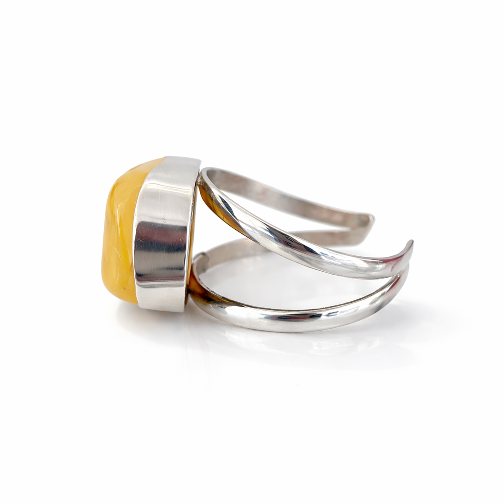 Efektowna bransoleta z naturalnym bursztynem, która przyciąga uwagę wyrazistą formą i szlachetnym charakterem. Centralnym elementem ozdobnym jest okazały bursztyn o pięknej, ciepłej barwie, podkreślający unikatowość biżuterii i naturalne pochodzenie kamienia. Starannie wykonana oprawa nadaje całości elegancki, a jednocześnie artystyczny wyraz.