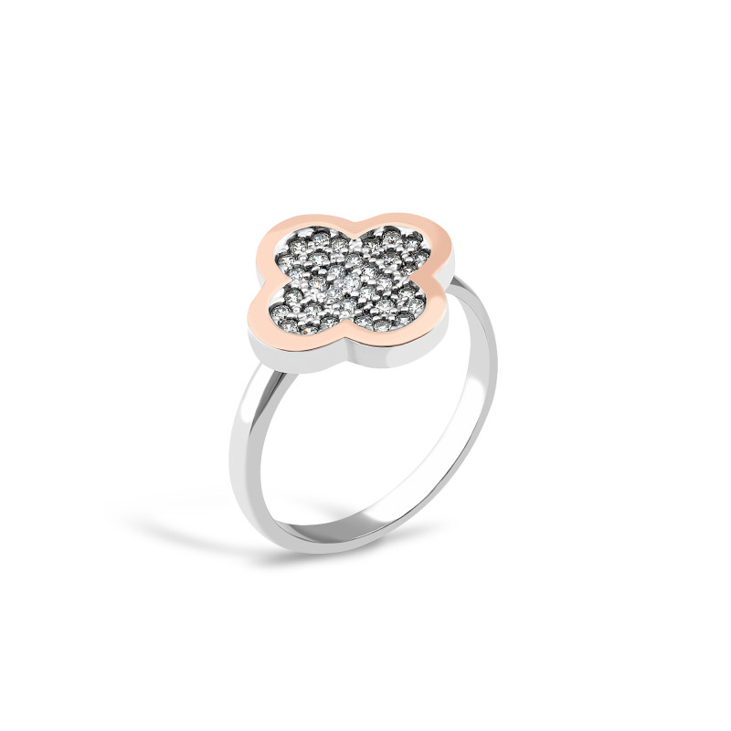 Srebrny pierścionek koniczynka z białą cyrkonia 458CC