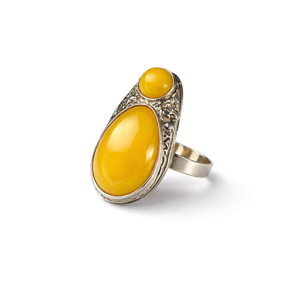 Elegancki pierścionek z naturalnym bursztynem, który przyciąga uwagę ciepłą, miodową barwą i organiczną formą kamienia. Duży, starannie oszlifowany bursztyn został osadzony w srebrnej oprawie, podkreślającej jego naturalne piękno i unikatowy charakter. Biżuteria doskonale sprawdzi się jako wyrazisty akcent stylizacji – zarówno na co dzień, jak i na wyjątkowe okazje.