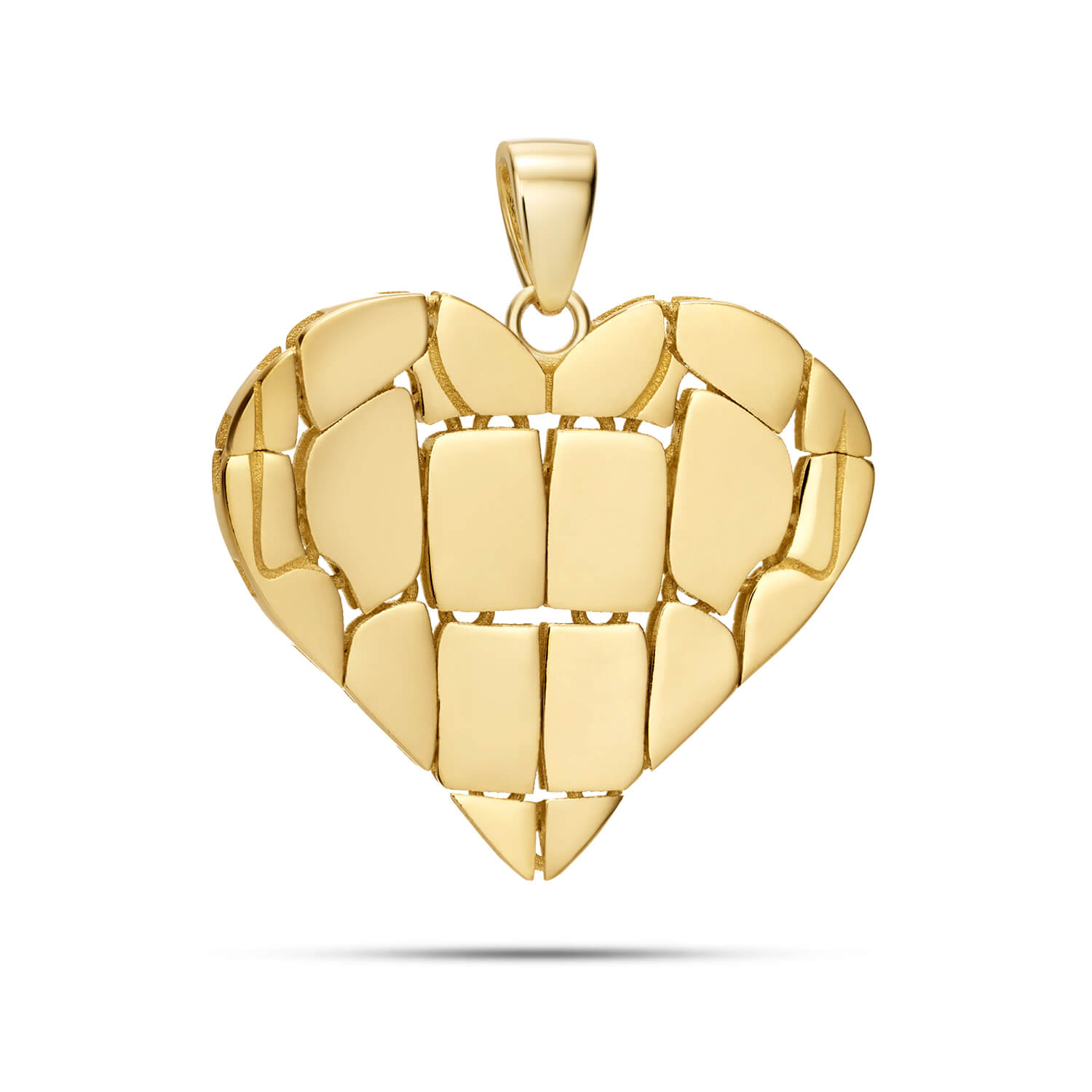 Zawieszka SERCE VITRAIL to wyjątkowy model, który urzeka swoim oryginalnym wzorem przypominającym artystyczne witraże. Złote segmenty o nieregularnych kształtach tworzą harmonijną mozaikę w formie serca, nadając biżuterii unikatowego charakteru i lekkości. Każdy element delikatnie odbija światło, tworząc subtelne refleksy i dodając całości elegancji. Wykonana z wysokiej jakości żółtego złota próby 585, zawieszka sprawdzi się jako wyrazisty dodatek do codziennych i wieczorowych stylizacji. To doskonały wybór dla osób, które lubią wyróżniać się detalem i szukają biżuterii z duszą.