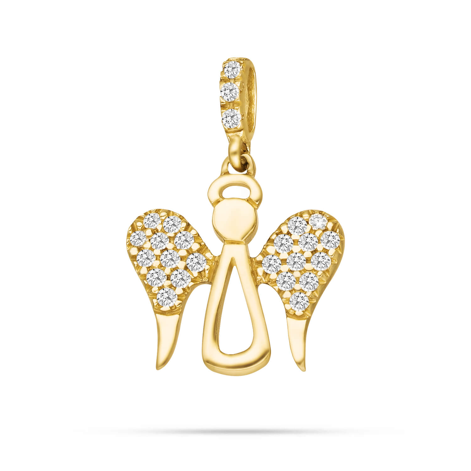 Zawieszka złotego anioła marki Zeccoro to połączenie klasycznego wzoru z nowoczesnymi elementami. Wysadzone białymi cyrkoniami skrzydła aniołka dodają mu blasku i elegancji. Reszta aniołka wykonana jest z gładkiego złota próby 585, co gwarantuje trwałość i wysoką jakość wykonania. Ta wyjątkowa zawieszka zachwyca swoim pięknem i może być doskonałym prezentem dla kogoś bliskiego lub idealnym dodatkiem do Twojej biżuterii. Każdy szczegół został starannie przemyślany i wykonany z dbałością o najmniejsze detale, co sprawia, że ??zawieszka ta jest nie tylko piękna, ale także wyjątkowa. Dodaj tę zawieszkę do swojej kolekcji biżuterii i ciesz się jej blaskiem na co dzień lub podczas specjalnych okazji.