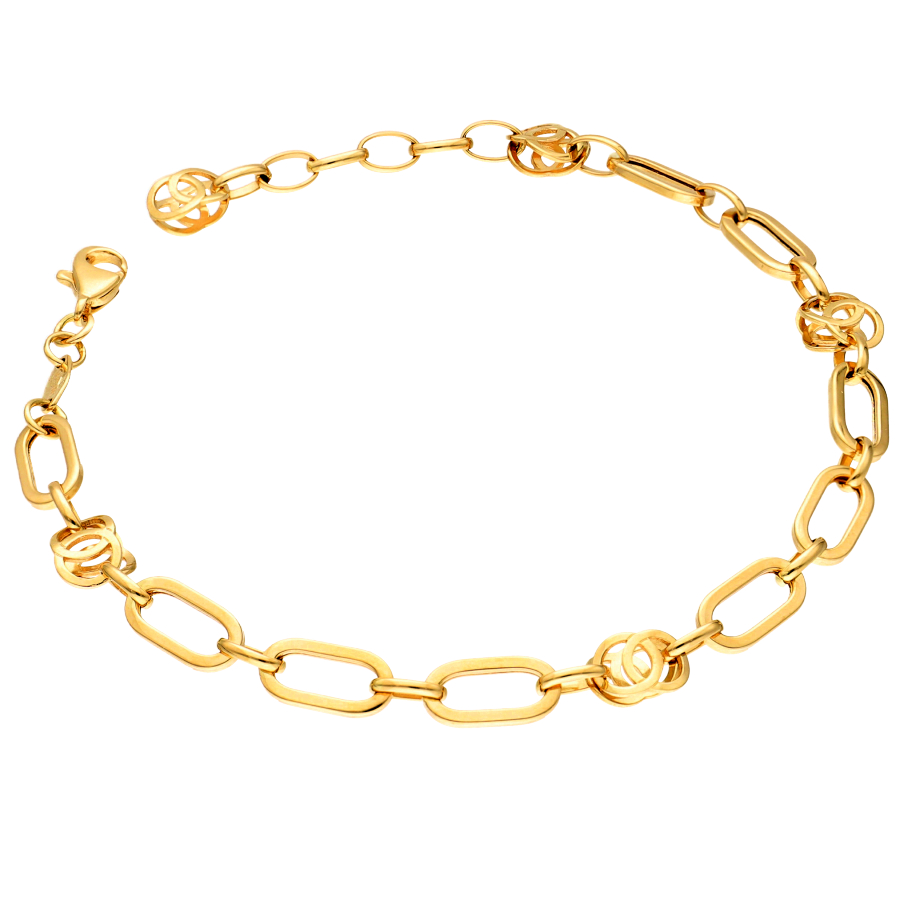 Unikalna, modna, o naturalnej barwie – bransoletka złota zbudowana z większych i mniejszych owali oraz splecionych ze sobą kółeczek, z zapięciem typu karabinek i długości 19 cm, z możliwością jej regulacji. Wyprodukowana w najlepszej włoskiej fabryce z długoletnią tradycją, w technologii pozwalającej uzyskać efekt objętości z zachowaniem rozsądnej wagi. Ze złota w próbie 585, posiada cechę probierczą, świadczącą o szlachetności wyrobu. Sprzedawana legalnie, z oficjalnej polskiej dystrybucji przez markę ZECCORO. Zapakowana w stylowe, eleganckie pudełko, będzie doskonałym prezentem na różne okazje.