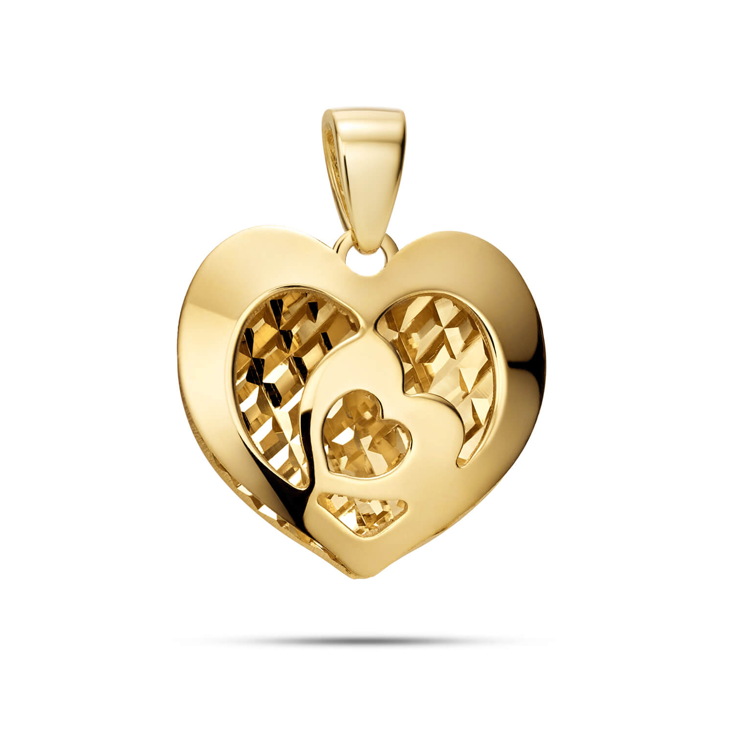 Złota zawieszka próby 585 w kształcie serca to wyjątkowa propozycja z kolekcji BASIC. Ażurowy wzór z motywem dwóch serc wewnątrz oraz diamentowane wykończenie powierzchni nadają całości wyjątkowego blasku i głębi. Symbolika serca i subtelny połysk sprawiają, że to idealny wybór na prezent pełen emocji — dla mamy, partnerki czy przyjaciółki.