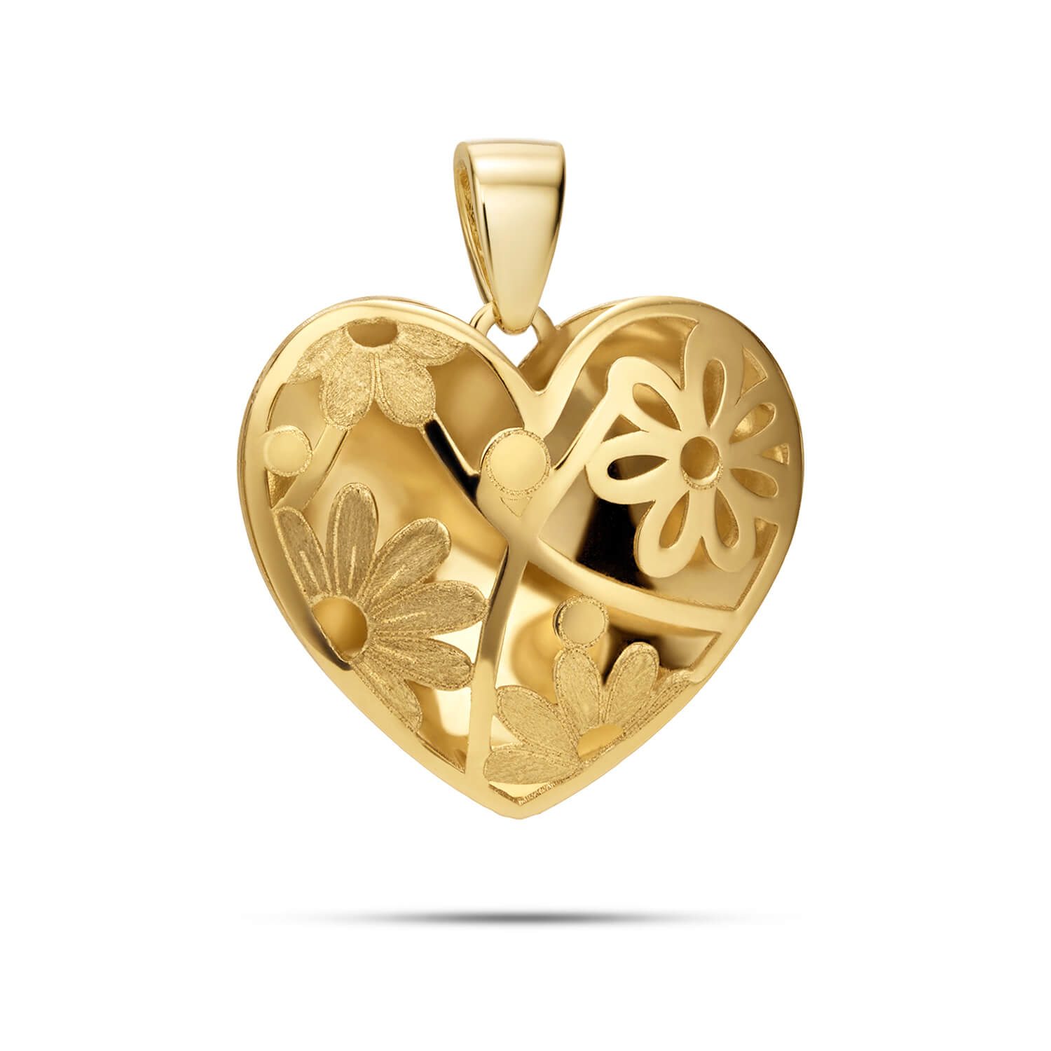 Złota Zawieszka 585 Ażurowe Serce z Motywem Kwiatów BASIC
