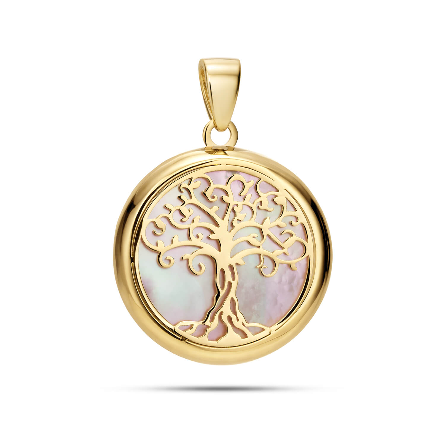 Elegancka zawieszka wykonana ze złota próby 585 z ażurowym motywem Drzewa Życia, osadzonym na naturalnej masie perłowej. Delikatny połysk różowo-kremowego tła pięknie kontrastuje z ciepłym odcieniem złota, tworząc kompozycję pełną harmonii i symboliki. To wyjątkowa biżuteria, która łączy w sobie piękno natury, duchową głębię i ponadczasowy styl.