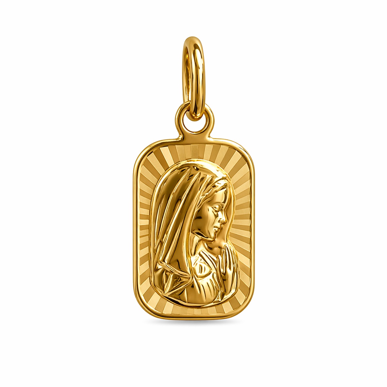 Złota zawieszka Matka Boska na prostokątnej blaszce