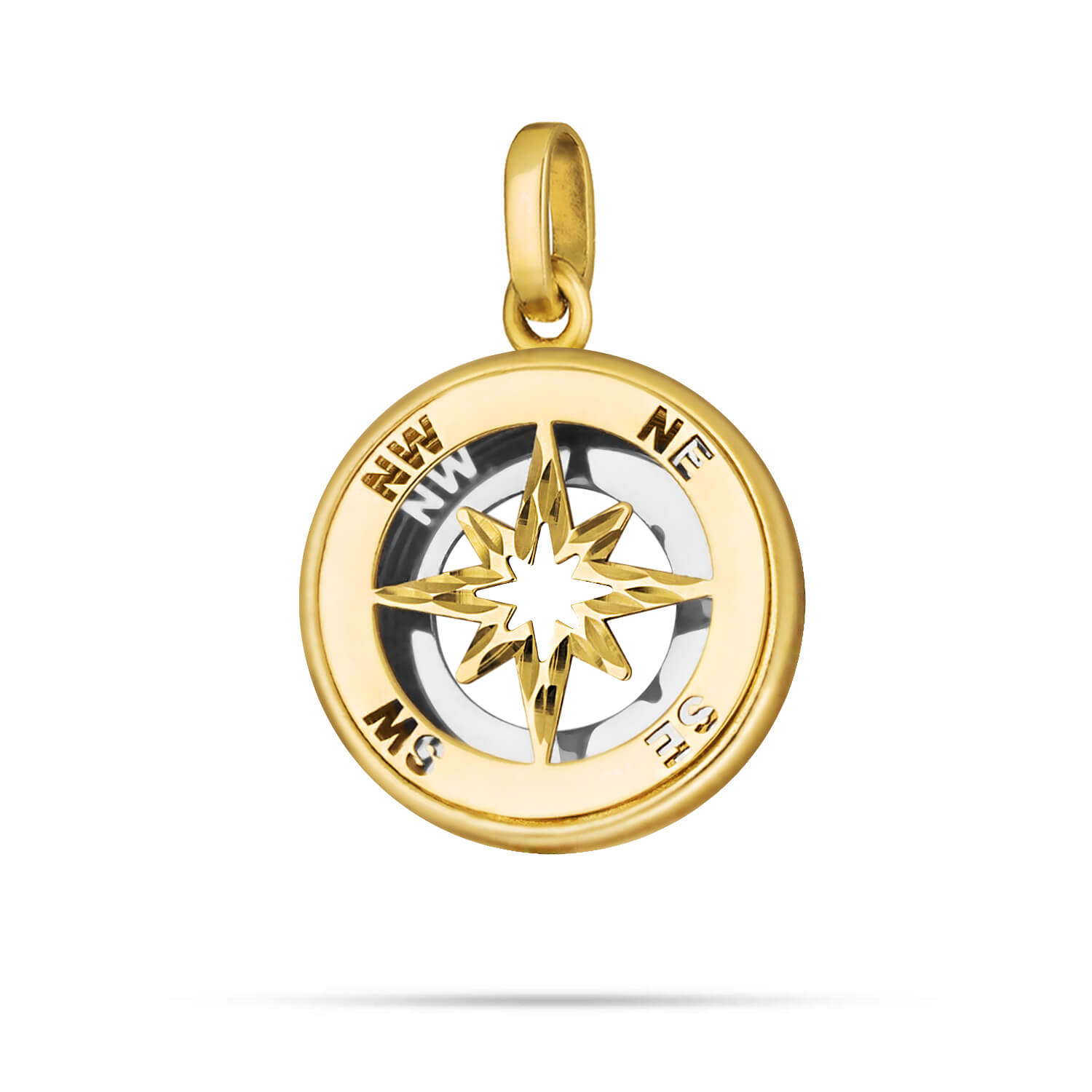 Złota zawieszka ażurowa róża wiatrów 3D z dwukolorowego złota 585 Vento