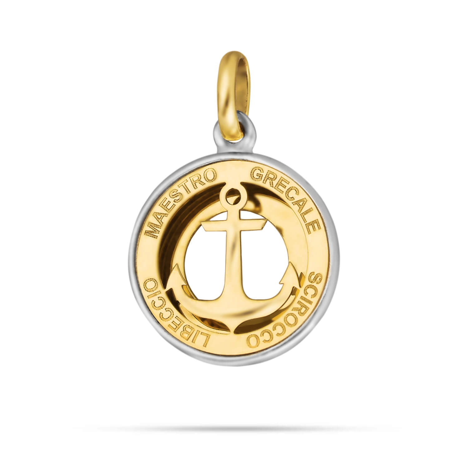 Złota zawieszka kotwica w ażurowym okręgu z dwukolorowego złota 585 Vento