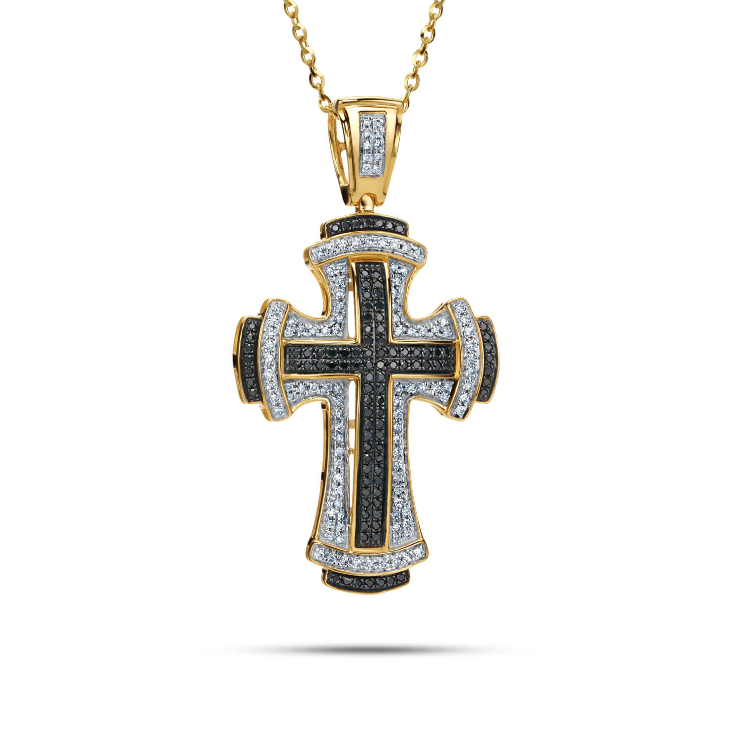 ZŁOTA ZAWIESZKA KRZYŻ Z DIAMENTAMI BIAŁYMI I CZARNYMI PP105692Y