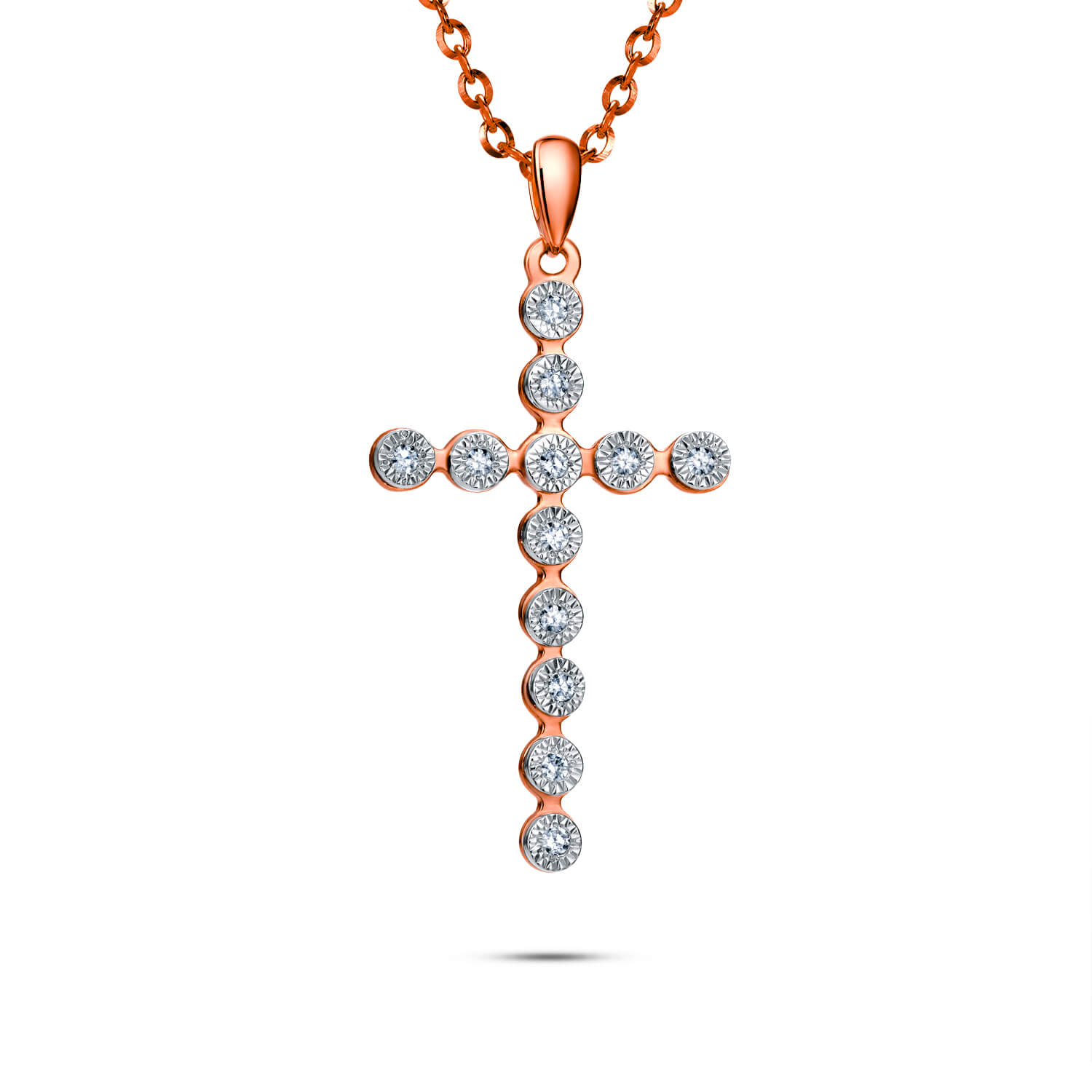 ZŁOTA ZAWIESZKA KRZYŻ Z DIAMENTAMI PP2583P ROSE GOLD