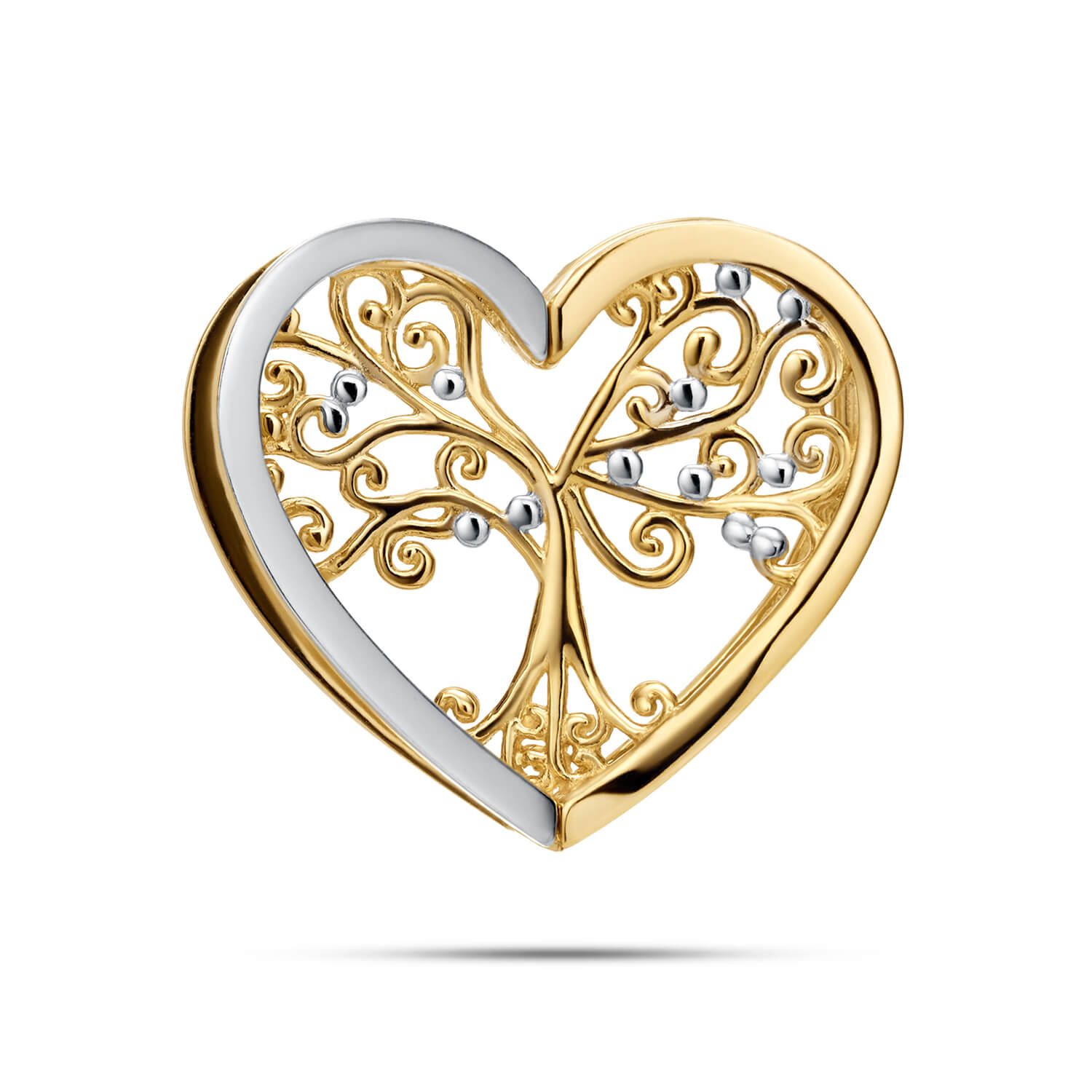 Złota zawieszka przelotka serce z drzewem szczęścia biało-żółte złoto Basic