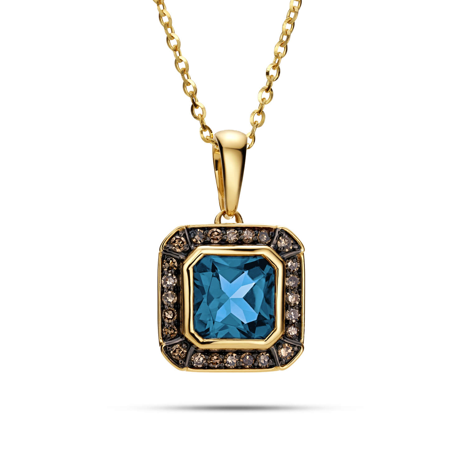 ZŁOTA ZAWIESZKA Z BRYLANTAMI SZAMPAŃSKIMI I LONDON BLUE TOPAZ RP17297LBTCHY