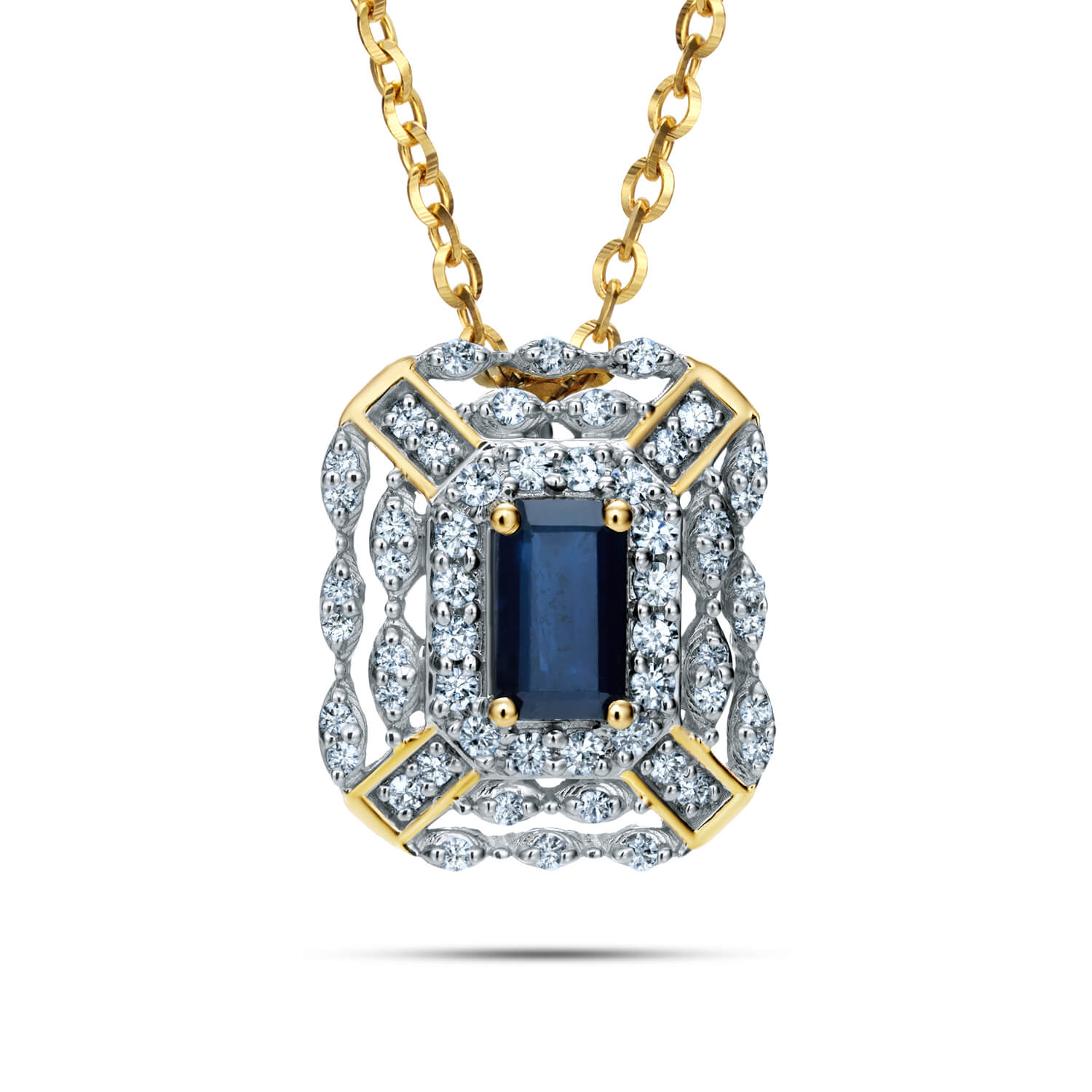 Złota zawieszka z diamentami i szafirami – klasyczne piękno w stylu art déco