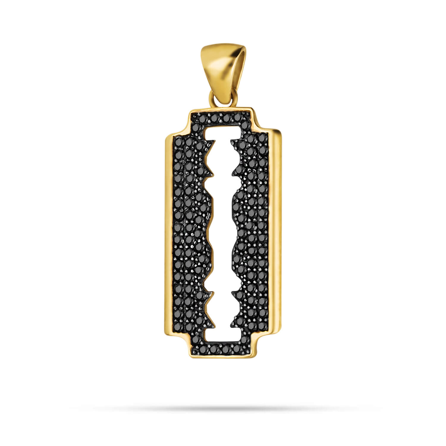 Złota zawieszka żyletka z czarnymi cyrkoniami 0203202320