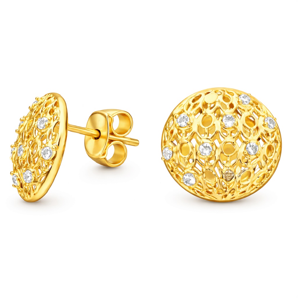 Subtelne kolczyki o ażurowej, kulistej formie, zachwycające lekkością i finezyjnym wzornictwem. Delikatna struktura tworzy efekt misternie splecionej kompozycji, która pięknie odbija światło i przyciąga spojrzenia. Ich elegancki, a zarazem romantyczny charakter sprawia, że doskonale dopełniają zarówno codzienne stylizacje, jak i bardziej wyjątkowe zestawy.