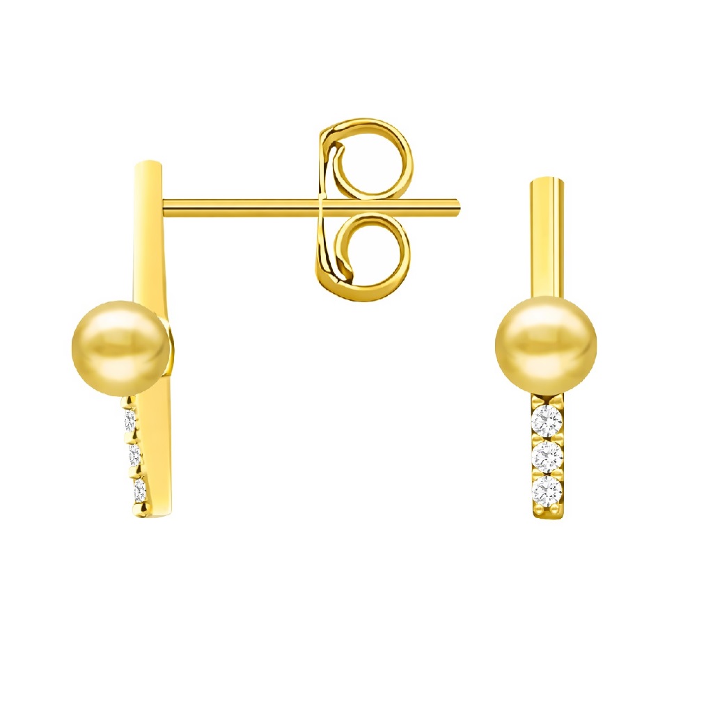 ZŁOTE KOLCZYKI SZTYFTY KULKA GŁADKA I CYRKONIE.