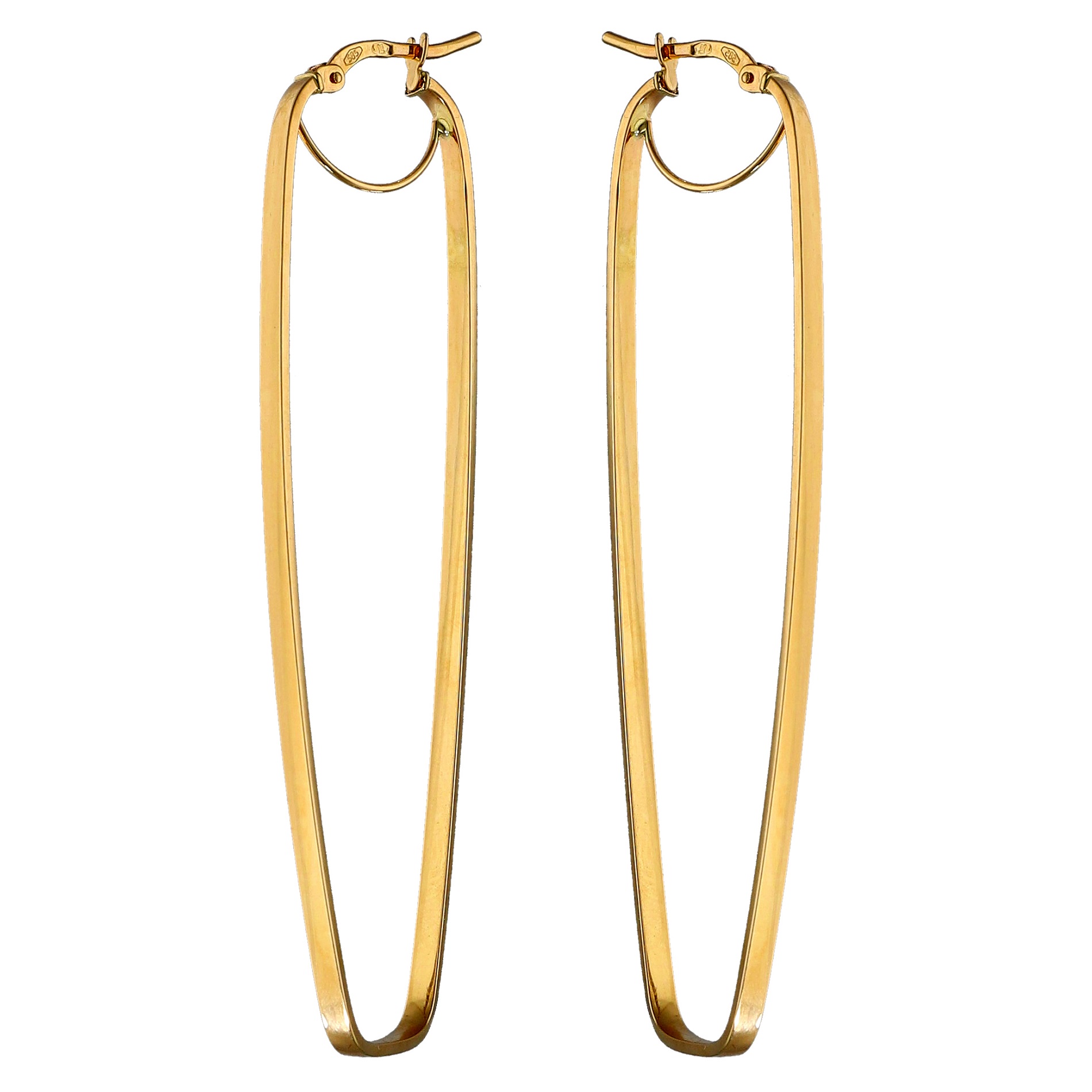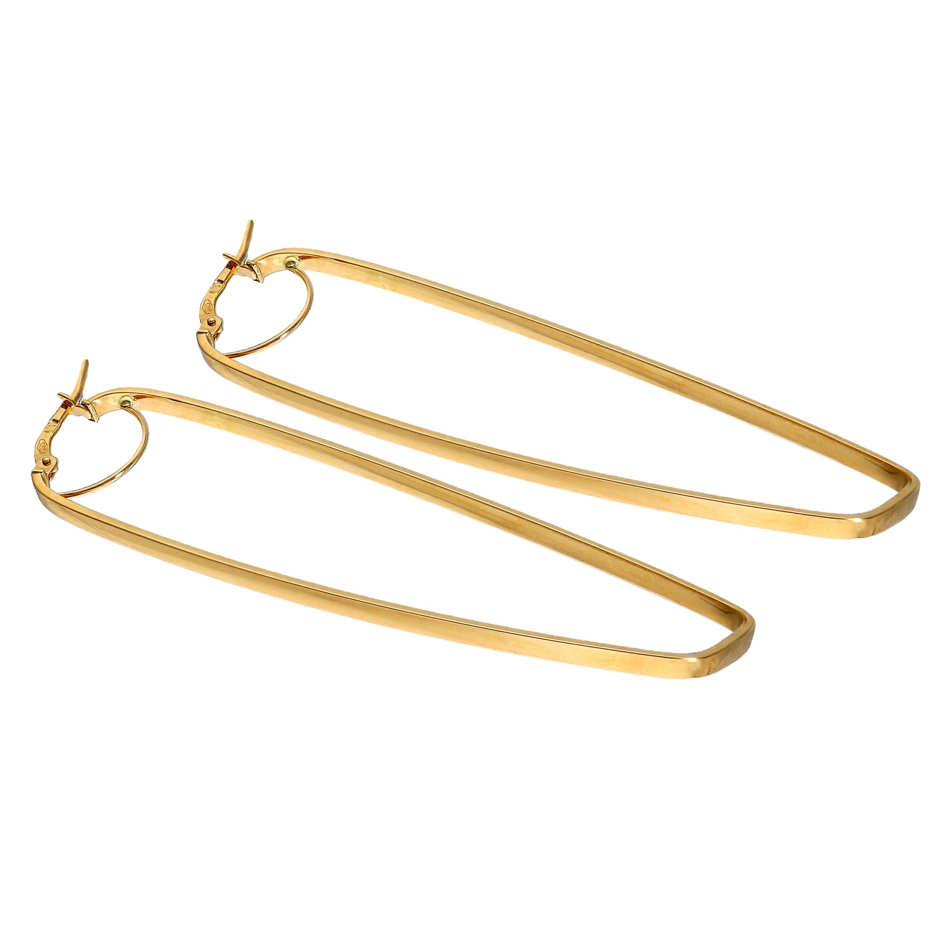 Unikalne, szykowne, o naturalnej barwie, złote kolczyki – Gładkie, prostokątne subtelnie wygięte o wysokości 65 mm i szerokości 20 mm, z klasycznym zapięciem angielskim, z wygiętym elementem przy zapięciu wzmacniającym konstrukcję kolczyka. Wyprodukowane w najlepszej włoskiej fabryce z długoletnią tradycją, ze złota w próbie 585, posiada cechę probierczą, świadczącą o szlachetności wyrobu. Sprzedawane legalnie z oficjalnej polskiej dystrybucji przez markę ZECCORO. Zapakowane w stylowe eleganckie pudełko, będą idealnym prezentem dla kobiety.