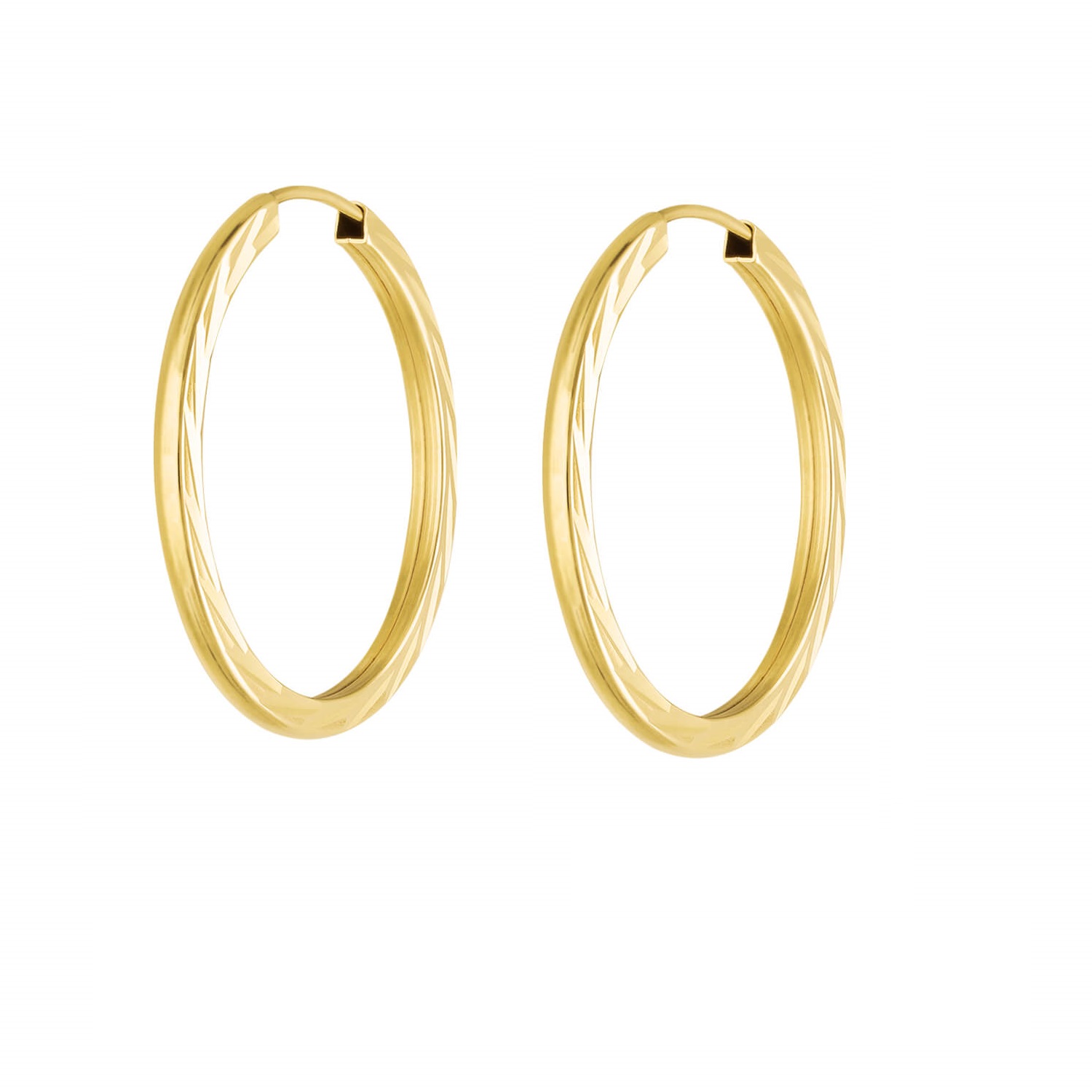 Złote kolczyki koła szarniry fasetowane po bokach 4 cm