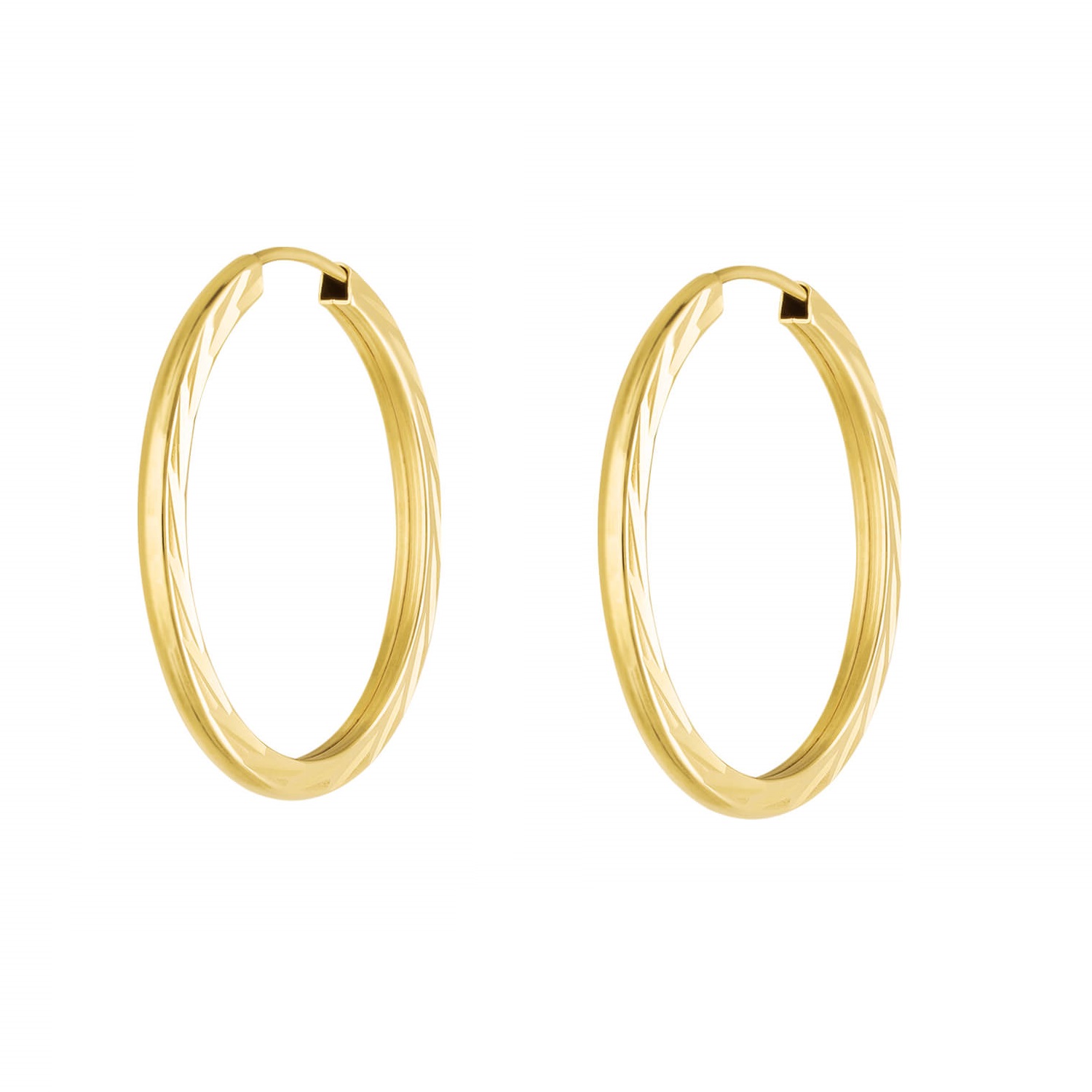 Złote kolczyki koła szarniry fasetowane po bokach 5 cm