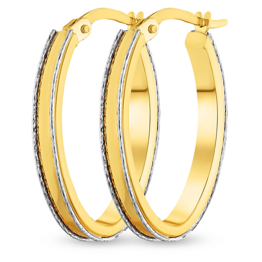 Unikalne, a zarazem klasyczne, efektownie błyszczące, o naturalnej barwie, złote kolczyki – Koła o długości 24 mm i szerokości 3 mm, z klasycznym zapięciem (widełki). Dodatkowego kunsztu nadają dwa przylutowane na krawędziach druty z białego złota wraz z gładką powierzchnią pomiędzy nimi. Wyprodukowane w najlepszej włoskiej fabryce z długoletnią tradycją, ze złota w próbie 585, posiada cechę probierczą, świadczącą o szlachetności wyrobu. Sprzedawane legalnie z oficjalnej polskiej dystrybucji przez markę ZECCORO. Zapakowane w eleganckie, stylowe pudełko idealnie pasują na prezent dla kobiety.