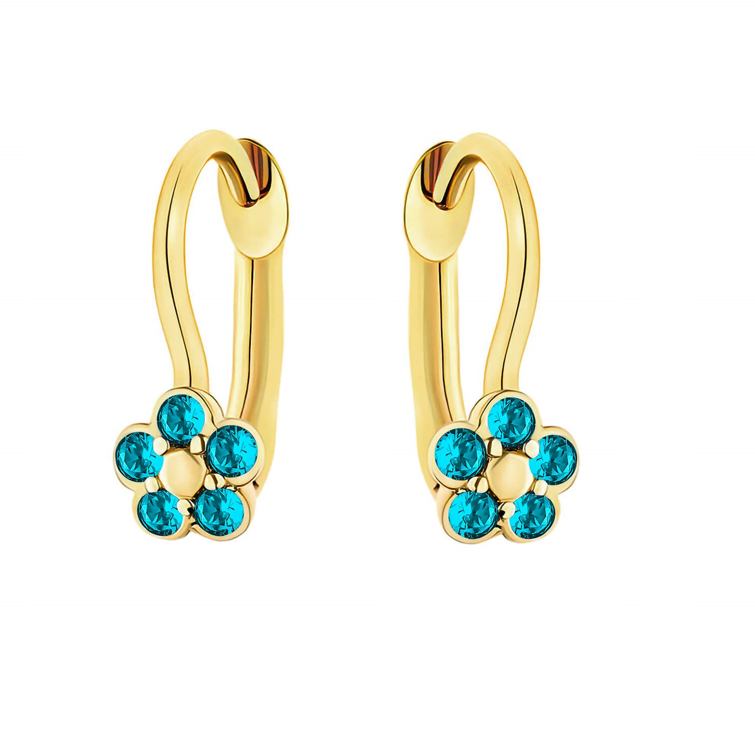 Złote kolczyki patentowe dla dziecka kwiatki 1205202336 jasno niebieska cyrkonia