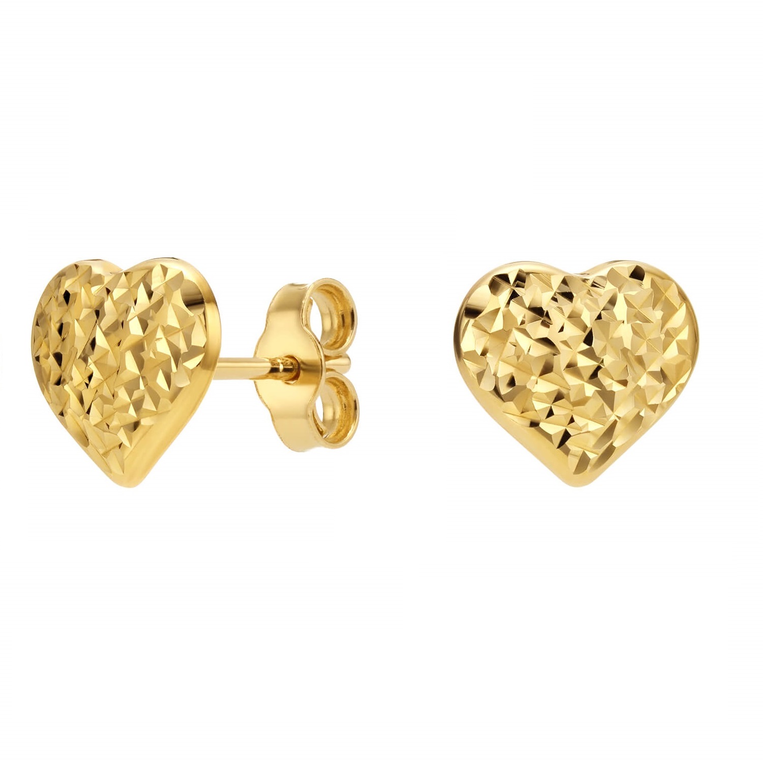 ZŁOTE KOLCZYKI SERCE DIAMENTOWANE 585