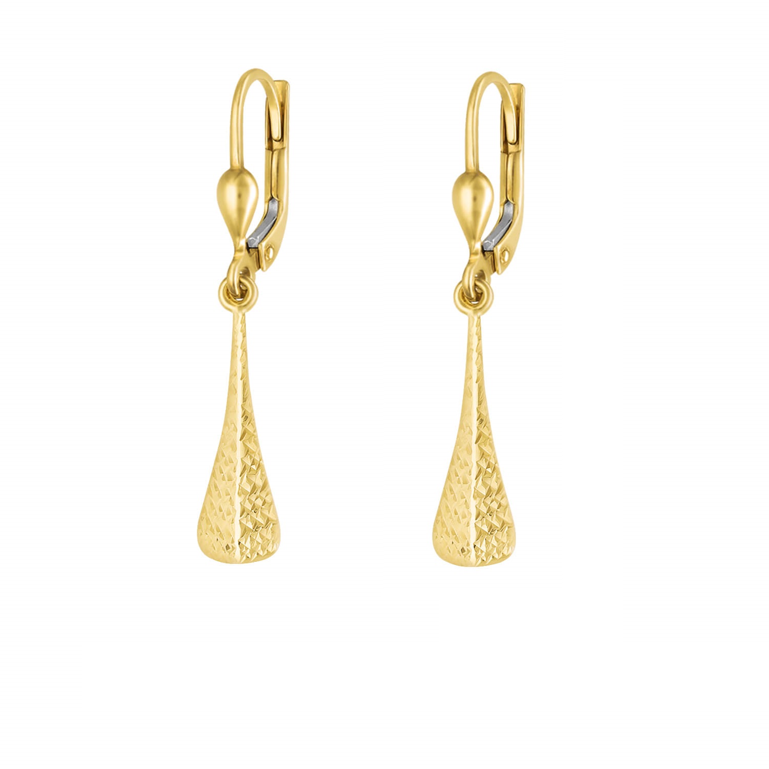 Unikalne, niepowtarzalne, efektownie błyszczące, o naturalnej barwie, złote kolczyki wiszące na biglu angielskim. Diamentowane i gładkie z tyłu z perfekcyjnie wykonanym błyskiem o wysokości 40 mm i szerokości 7,5 mm z klasycznym biglem angielskim (automatycznym). Wyprodukowane w najlepszej włoskiej fabryce z długoletnią tradycją ze złota w próbie 333, posiadają cechę probierczą świadczącą o szlachetności wyrobu. Sprzedawane legalnie z oficjalnej polskiej dystrybucji przez markę ZECCORO. Zapakowane w stylowe pudełko, będą idealnym prezentem na co dzień jak również do wieczorowych kreacji.