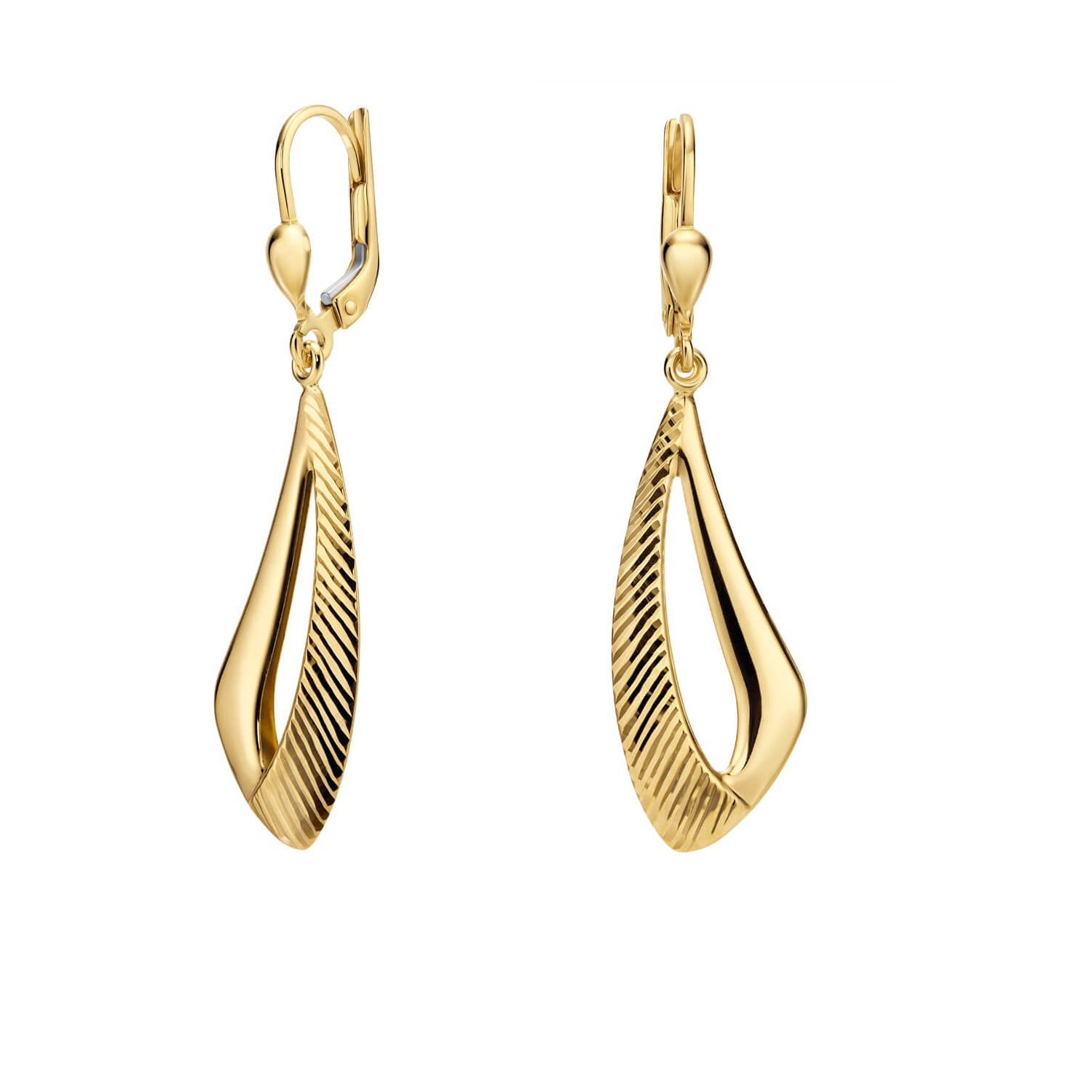 Złote kolczyki wiszące - złote żagle diamentowane 585 Basic