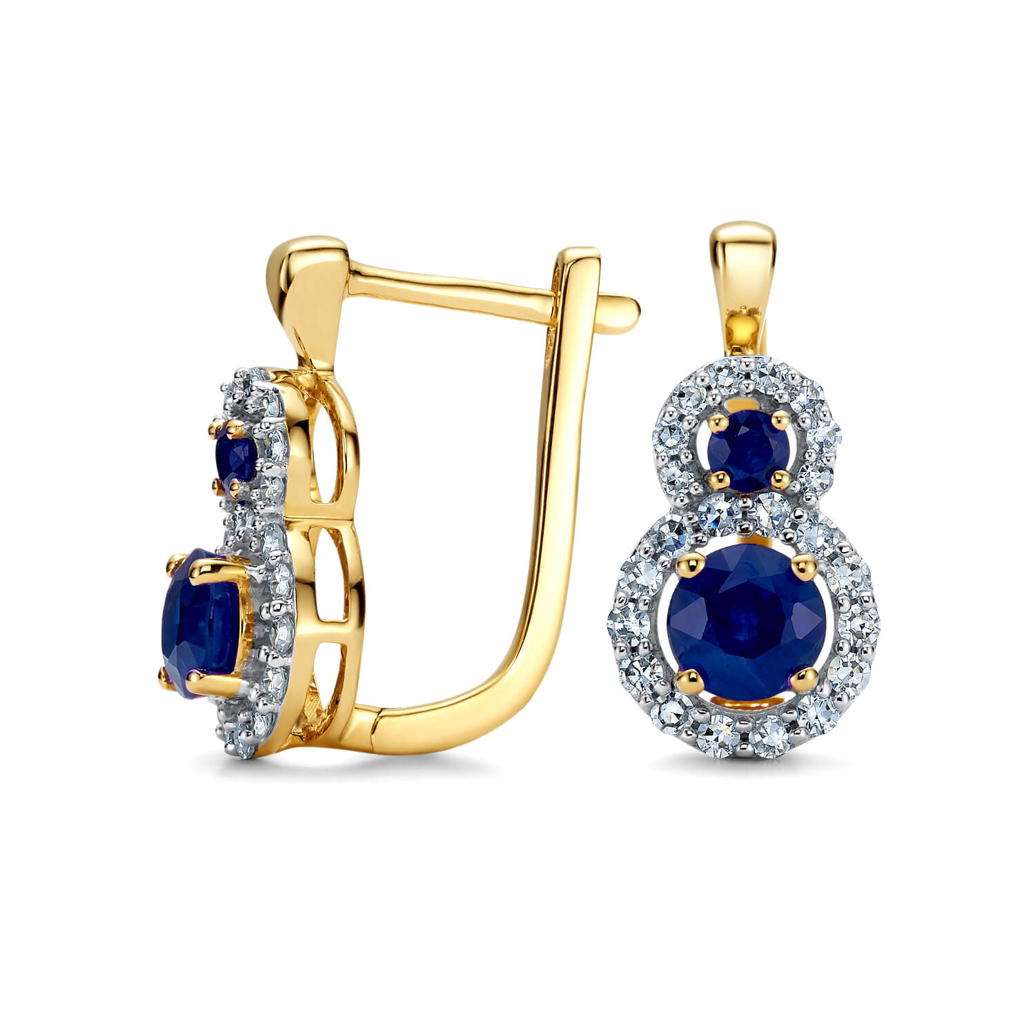 Złote kolczyki z diamentami i szafirem JE5330SAPY 0,23 CT
