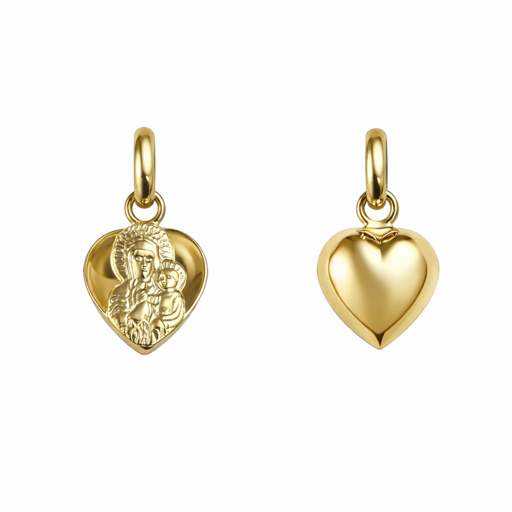 Złoty Medalik Serce z Matką Boską Częstochowską M 2305202320