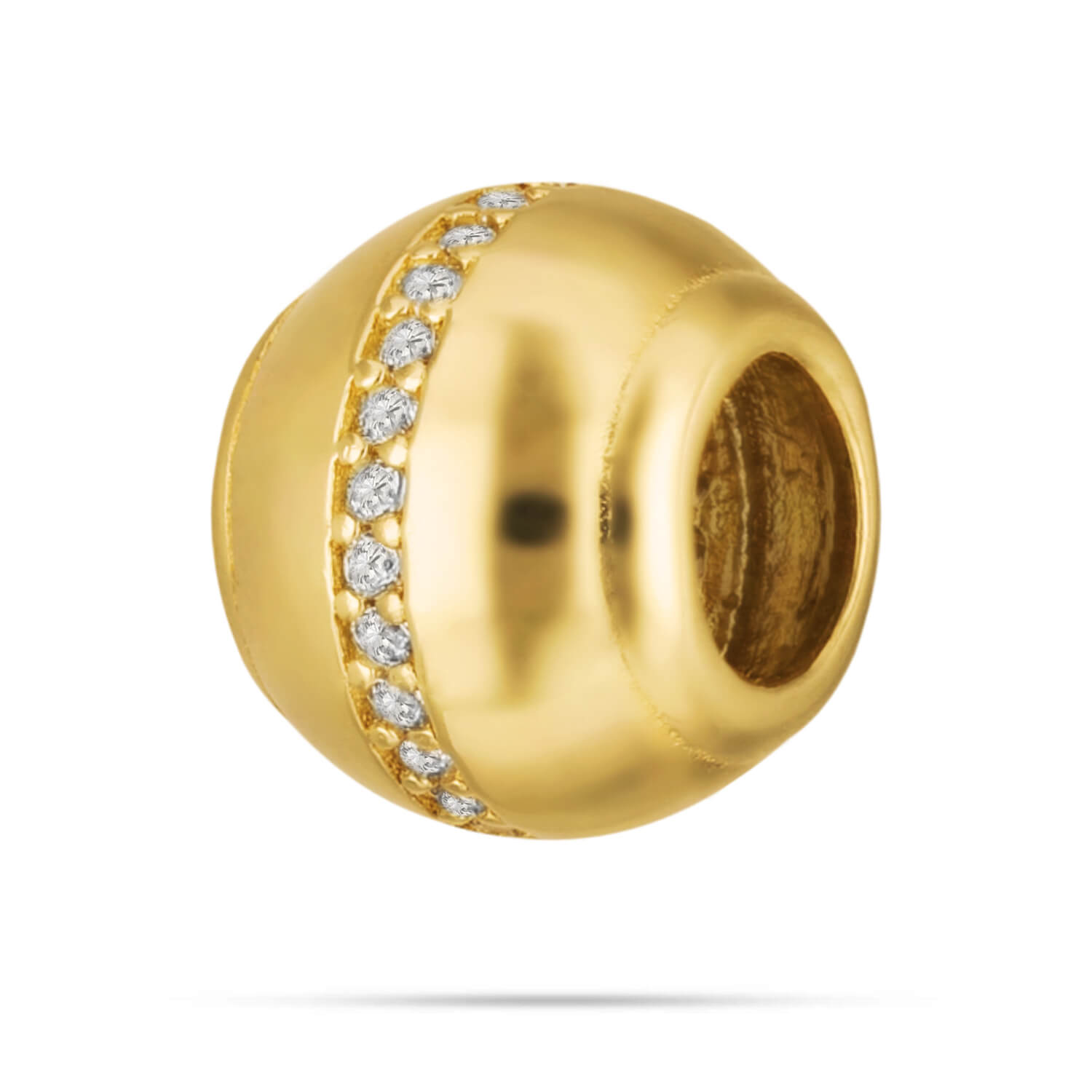 Złoty charms 585 z cyrkoniami - masywny glamour z błyszczącymi akcentami
