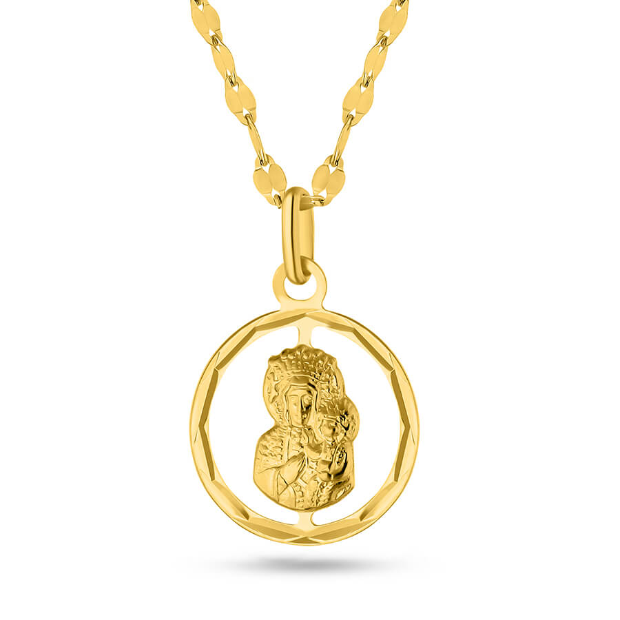 Złoty medalik Matka Boska Częstochowwska w okręgu ze złota 585