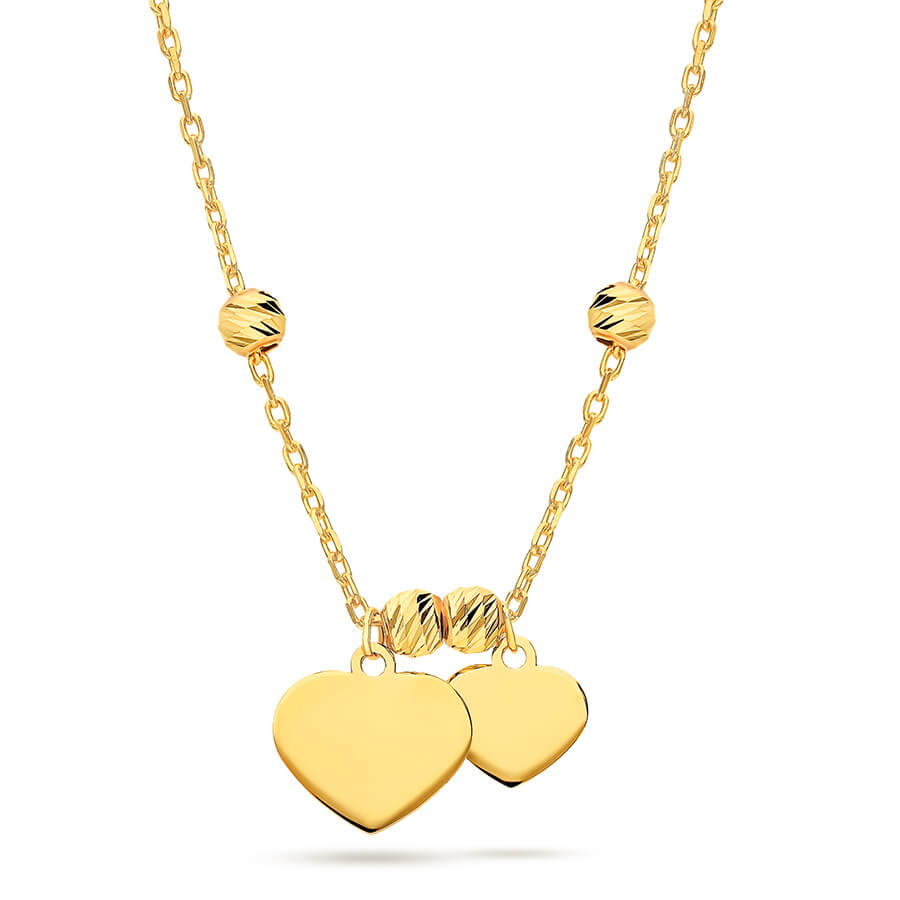 Wysokogatunkowa, efektownie błyszcząca, o naturalnej barwie – złota celebrytka dwa serca z kulkami diamentowanymi, o długości 45 cm, z możliwością jej regulacji do 42 cm. Wykonana z najwyższą starannością i dbałością o każdy detal w najlepszej włoskiej fabryce z długoletnią tradycją, ze złota w próbie 585, posiada cechę probierczą świadczącą o szlachetności wyrobu. Sprzedawana legalnie z oficjalnej polskiej dystrybucji przez markę ZECCORO.