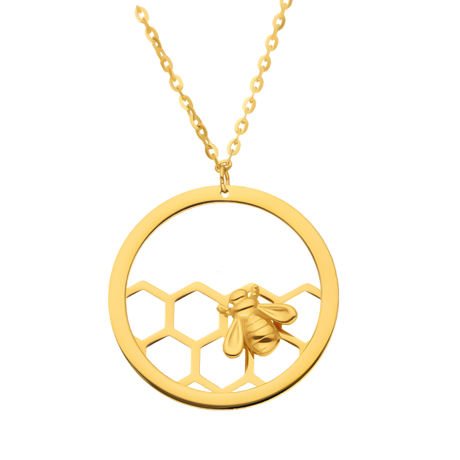 Złoty naszyjnik celebrytka pszczółka na plastrze miodu