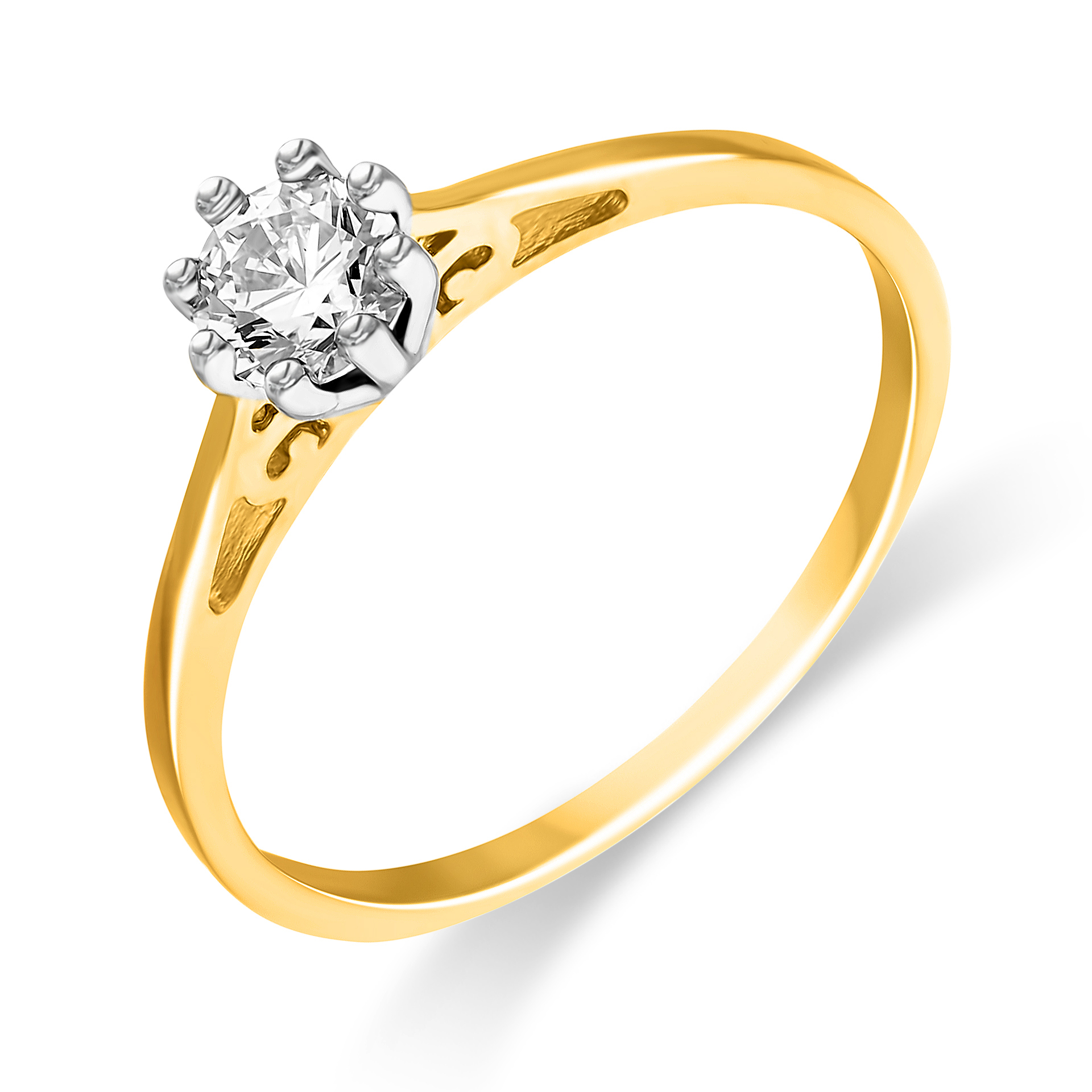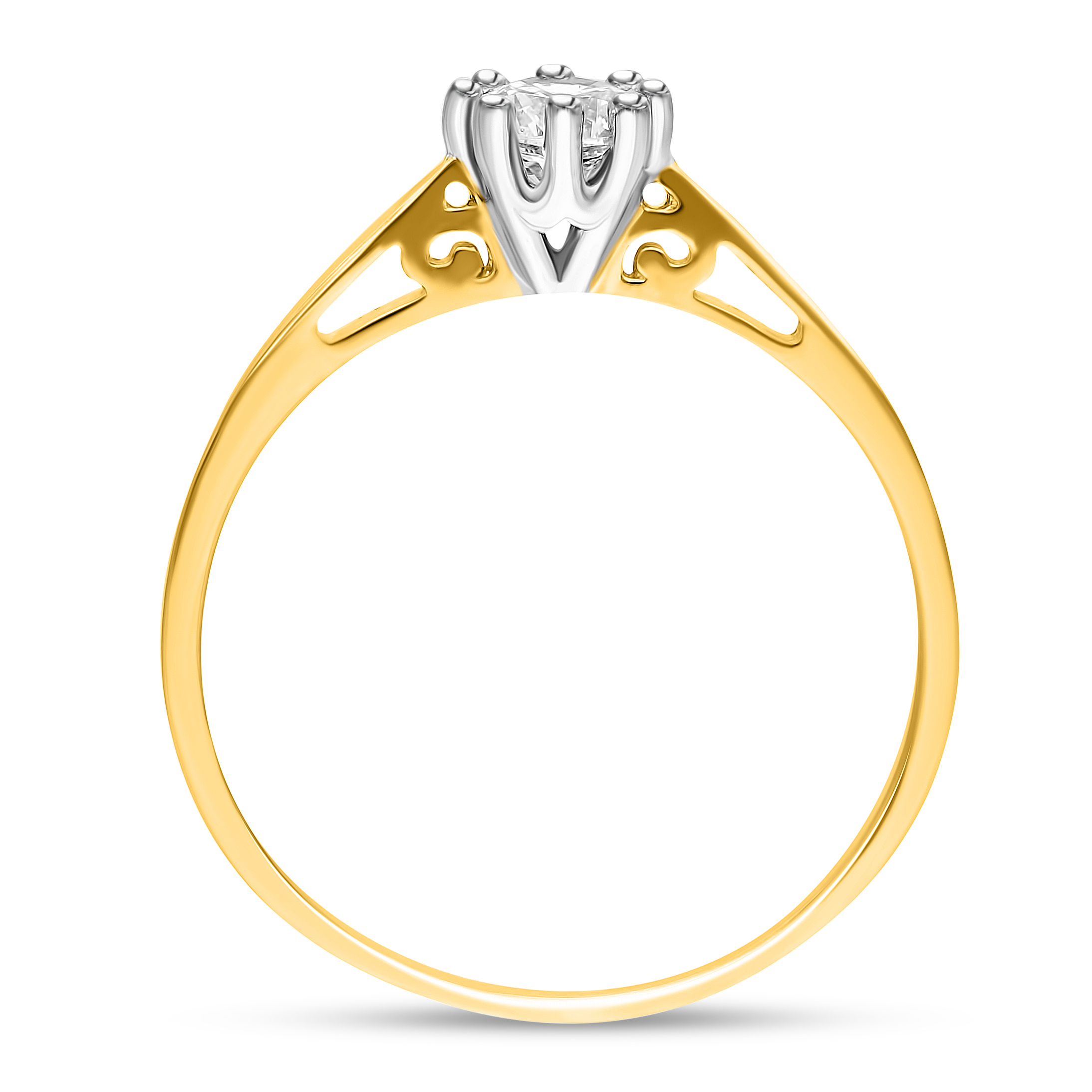 Złoty pierścionek biało - żółty wiktoriańska oprawa z cyrkonią