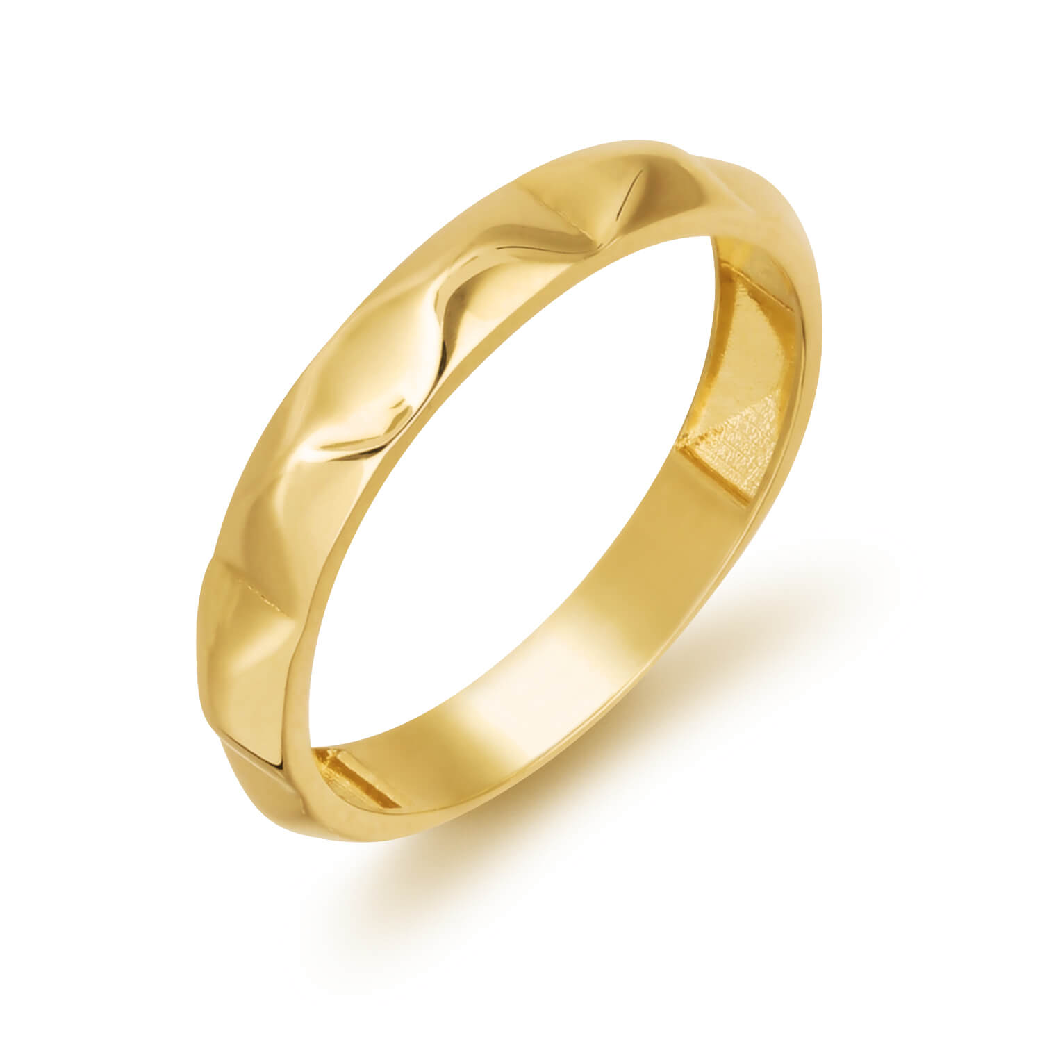 Ten elegancki pierścionek z żółtego złota próby 585 wyróżnia się subtelnym, falowanym profilem, który pięknie odbija światło i nadaje mu dynamiczny charakter. Minimalistyczna forma w połączeniu z delikatnym wygięciem tworzy nowoczesny, a zarazem ponadczasowy design – idealny zarówno do noszenia na co dzień, jak i na wyjątkowe okazje.