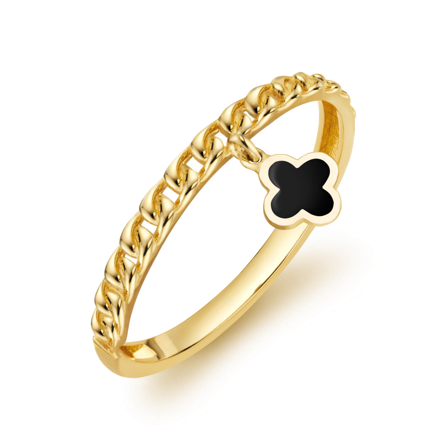 Złoty pierścionek pancerka czarna wisząca koniczyna złoto 585 City P_37