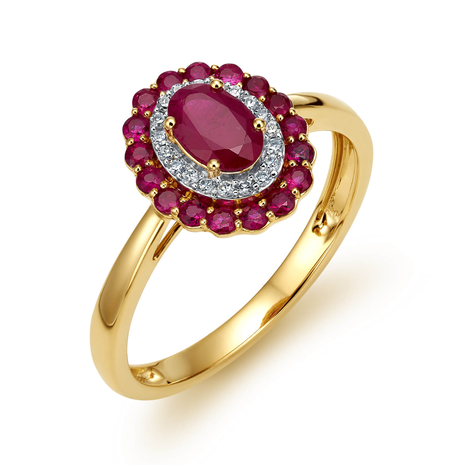 Złoty pierścionek z brylantami i rubinami JR14313RBY 0,07 CT