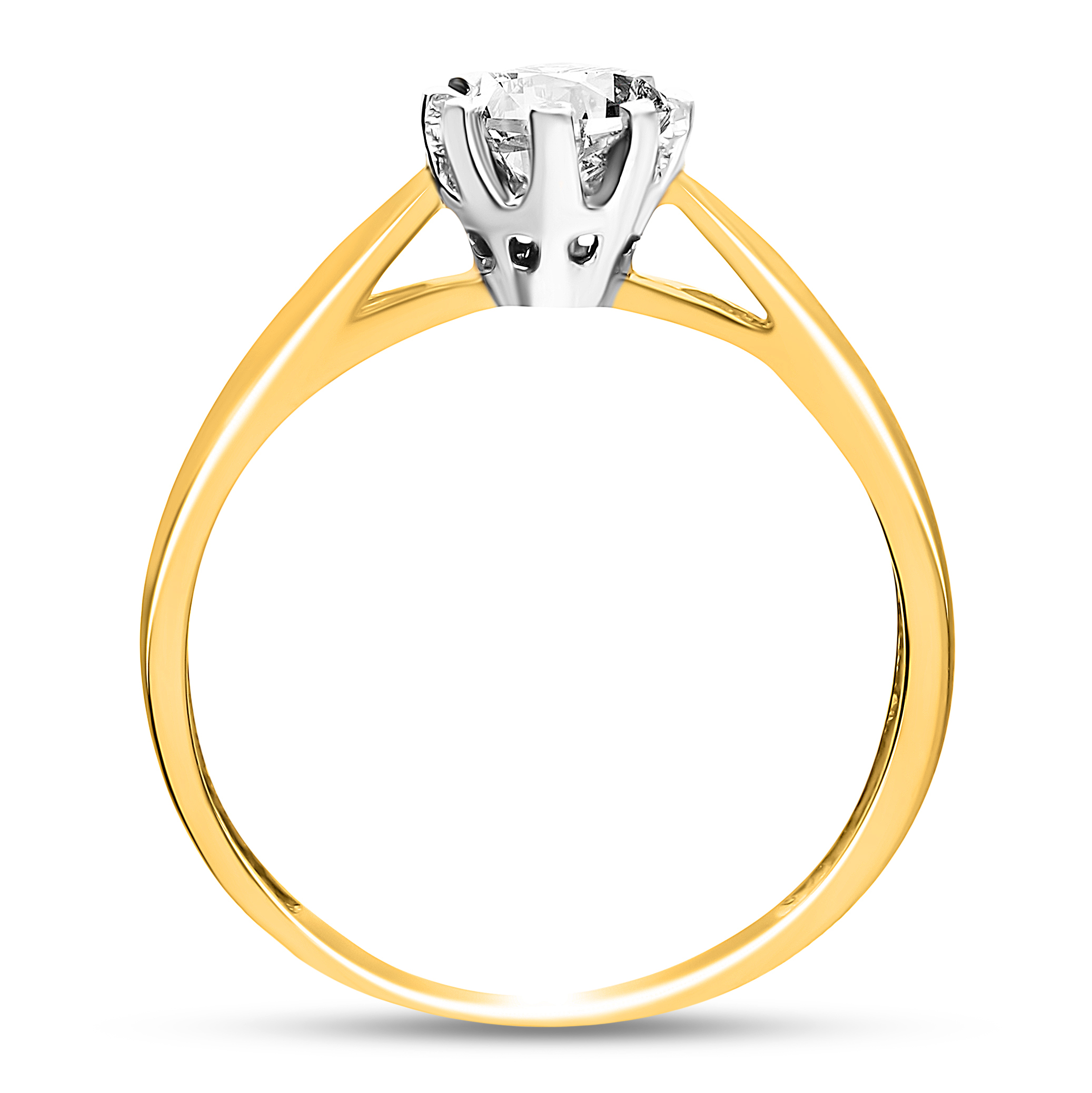 Złoty pierścionek zaręczynowy cyrkonia - klasyczna korona - classic