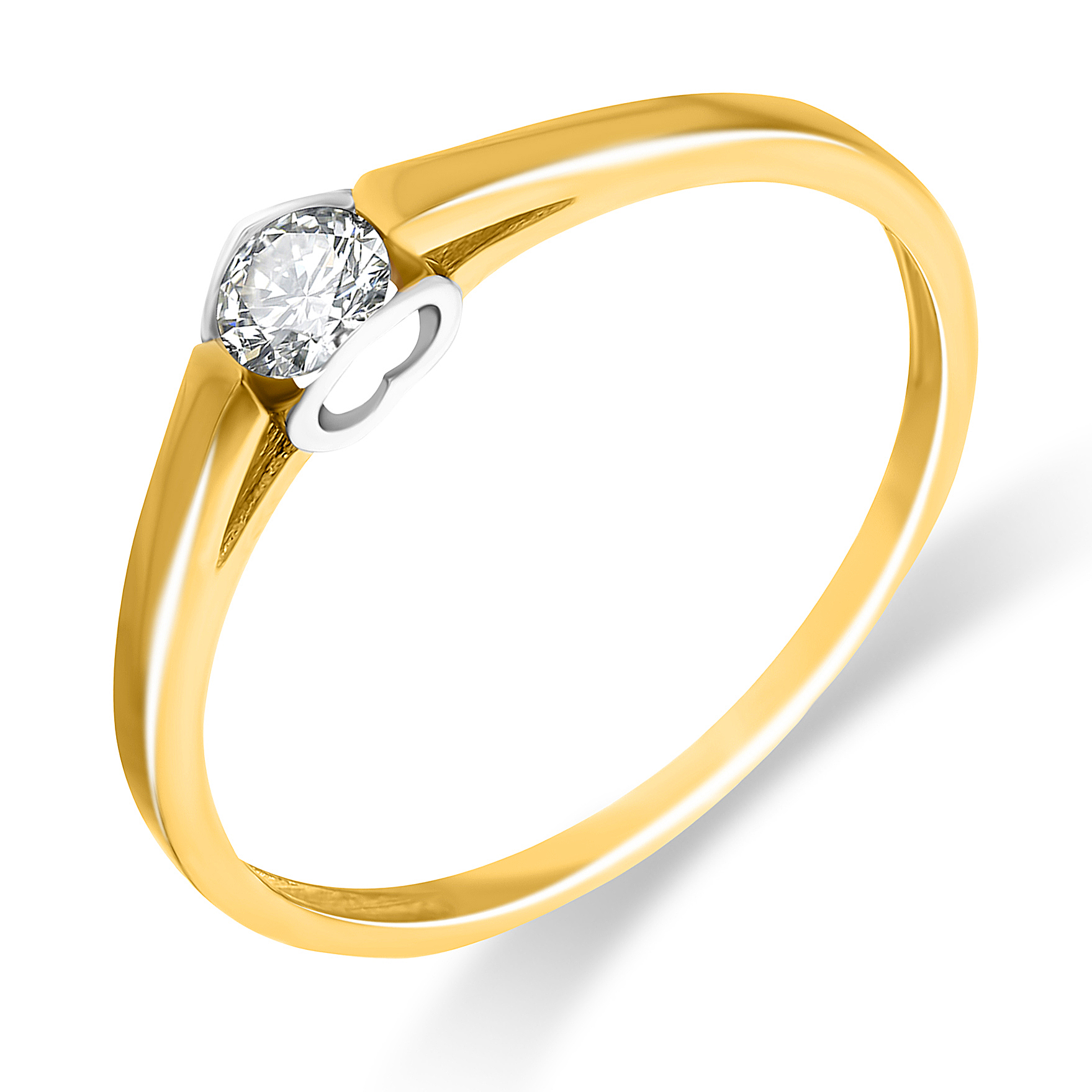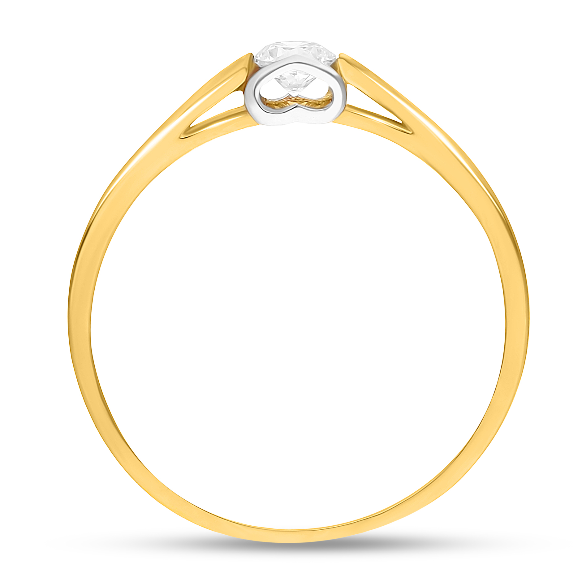 Złoty pierścionek zaręczynowy w białej oprawie serca z cyrkonią